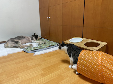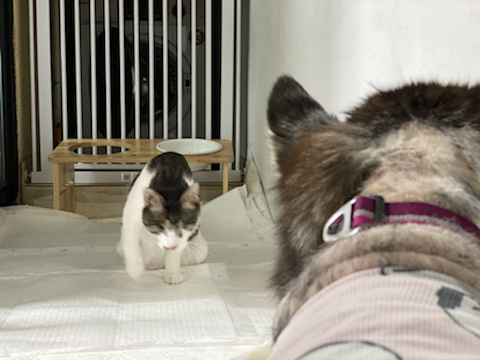 격리 시켜놨더니 개 손님이 궁금한 고양이1