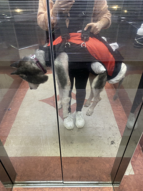 혹시나 도움이 될까 싶어서 재활치료 하러 병원에도 잠시 다녔어. 병원에서 대형견 메고 다니는 나 찍어주심....ㅋㅋㅋㅋㅋ
