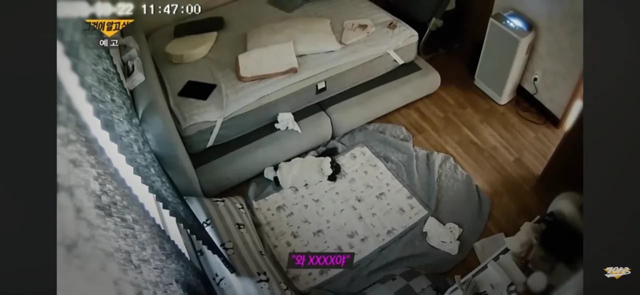 - 뿐 만 아니라 다른날 녹화 영상에는 안방에서 아기가 침대에 누워있는데 깔고 눕는다던가 발로 머리를 친다던가 4개월된 애를 무슨 인형 다루듯이 침대에 내동댕이 치며 던지는 영상이 들어있었음