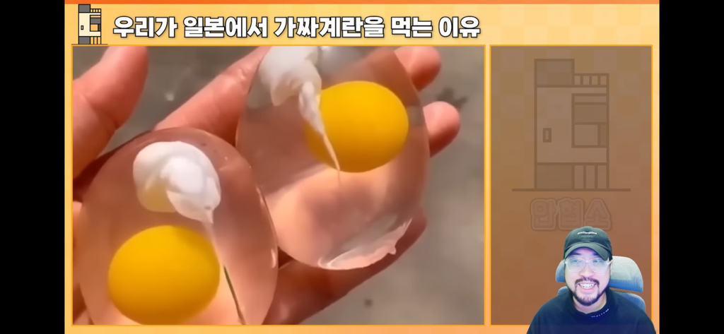 이거봐 저 노른자 구우면 굳지않아 요상하게 퍼짐 오른쪽은 진짜 생노른자