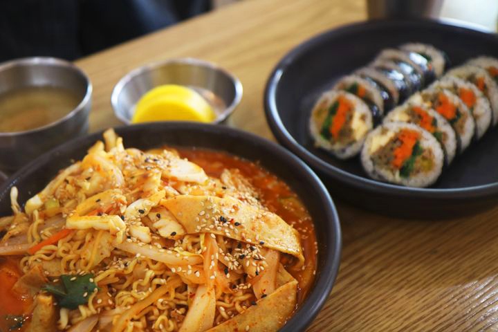 충무김밥의 뒤를 이은 오징어볶음과의 콜라보레이션을 선보이는 곳. 양계장에서 직접 공수 받는 계란, 산지에서 직접 공수하는 더덕 등 고급 식자재를 사용하며, 이에 대한 자부심도 매장 곳곳 엿보인다. 십여 가지의 김밥과 오징어 요리, 분식 류를 함께 판매하고 있는 것이 특징인데 오징어볶음을 김밥과 함께 먹는 것을 추천한다고. 속 재료가 큼직큼직하게 들어있어 씹는 맛이 있으면서 채소의 즙이 입안에서 기분 좋게 어우러진다.