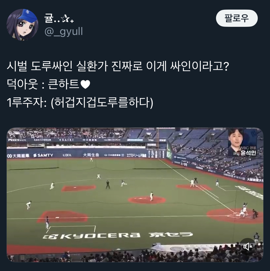 [흥미돋][WBC 평가전] 내가 ❤️ 이렇게 하면 도루 하는거다 작성자히로시마 붐붐|작성시간26.03.03|조회수9,220 목록 댓글 11 글자크기 작게가 글자크기 크게가 출처: https://x.com/_gyull/status/2028676781176479986?s=46&t=O0dhQ_0ijmrhSk9gvFWbiAX의 귤..✰₊님(@_gyull)시벌 도루싸인 실환가 진짜로 이게 싸인이라고? 덕아웃 : 큰하트♥ 1루주자: (허겁지겁도루를하다)x.com다리가 안보이게 달리는 중인 1루 주지 다음검색 현재 게시글 추가 기능 열기 북마크 공유하기 신고 센터로 신고 댓글 댓글 11 댓글쓰기 답글쓰기 댓글 리스트 작성자두쫀크 | 작성시간 26.03.04 도루 성공해서 하트한줄알았는뎈ㅋㅋㅋㅋㅋㅋㅋㅋㅋㅋㅋㅋㅋㅋㅋㅋㅋㅋㅋㅋ 작성자이킁에킁 | 작성시간 26.03.04 쌰갈ㅋㅋㅋㅋㅋㅋㅋㅋㅋ 작성자팬레터 | 작성시간 26.03.04 싸인을 원래 저렇게 개크게 해도되나요 ㅠ? 작성자라로리로 | 작성시간 26.03.04 ㅋㅋㅋㅋㅋㅋㅋㅋㅋㅋㅋㅋㅋㅋㅋㅋㅋㅁㅊ 작성자후라이풍자여름 | 작성시간 26.03.04 아이씨 개웃기네진짴ㅋㅋㅋㅋㅋㅋㅋㅋㅋㅋㅋㅋㅋㅋㅋㅋㅋㅋ 댓글 전체보기