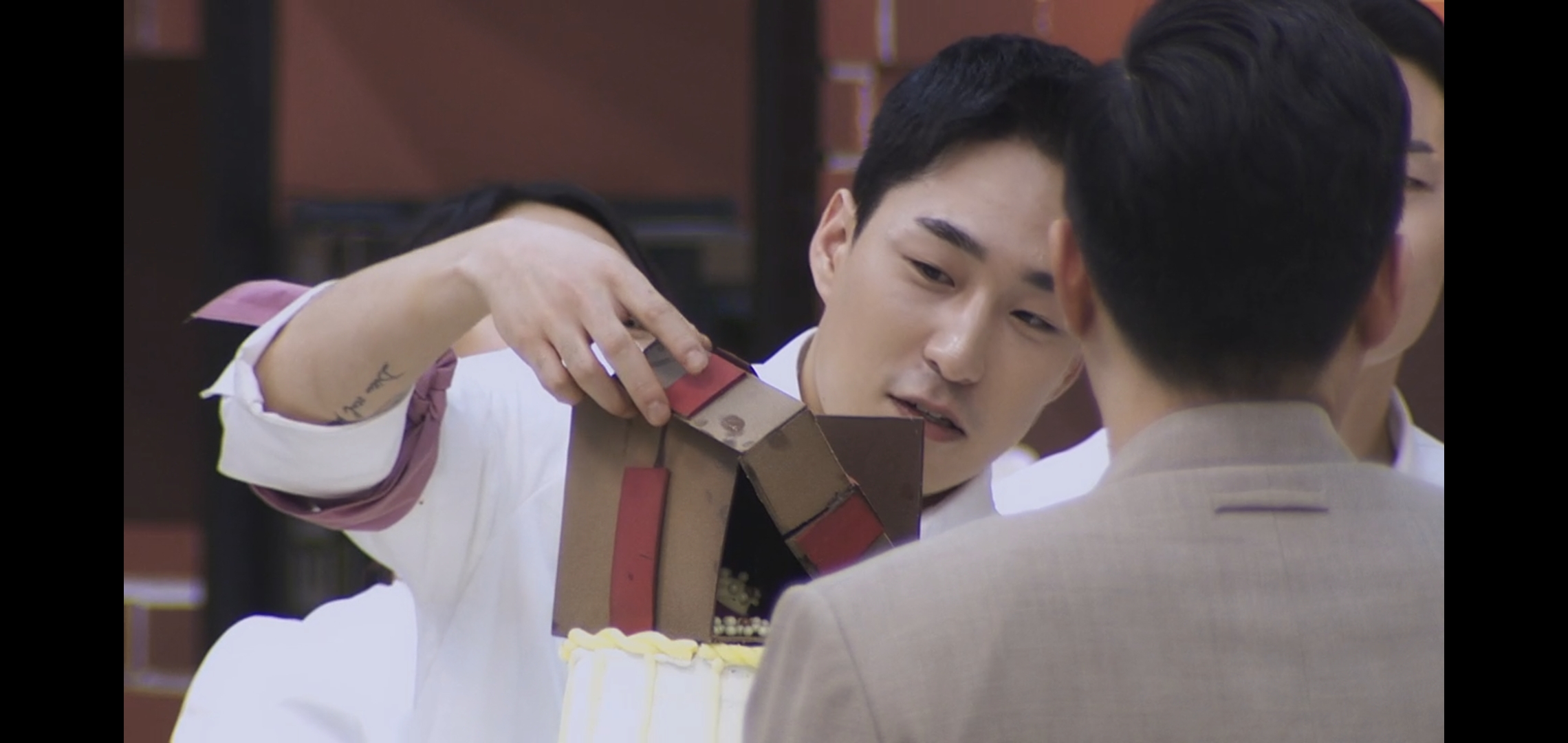 근데 단체 미션으로 높은 케이크 만들기 했는데