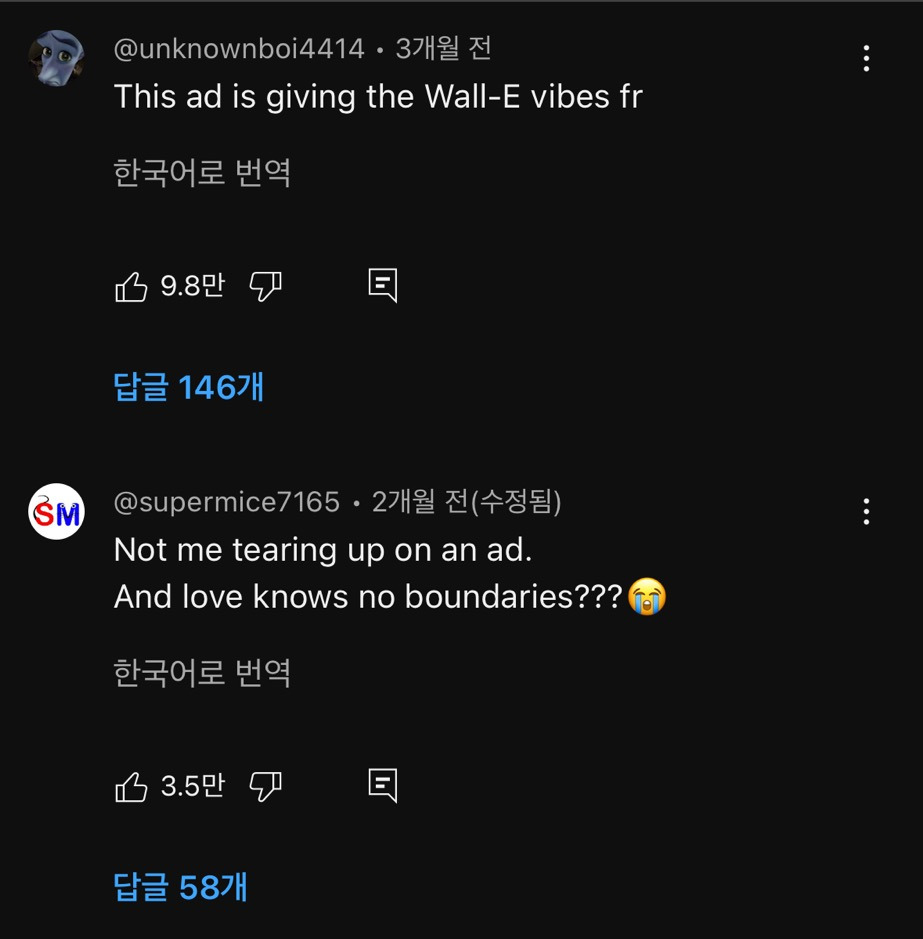 내가 여태 본 광고중에 가장 사랑스럽다 (강조)