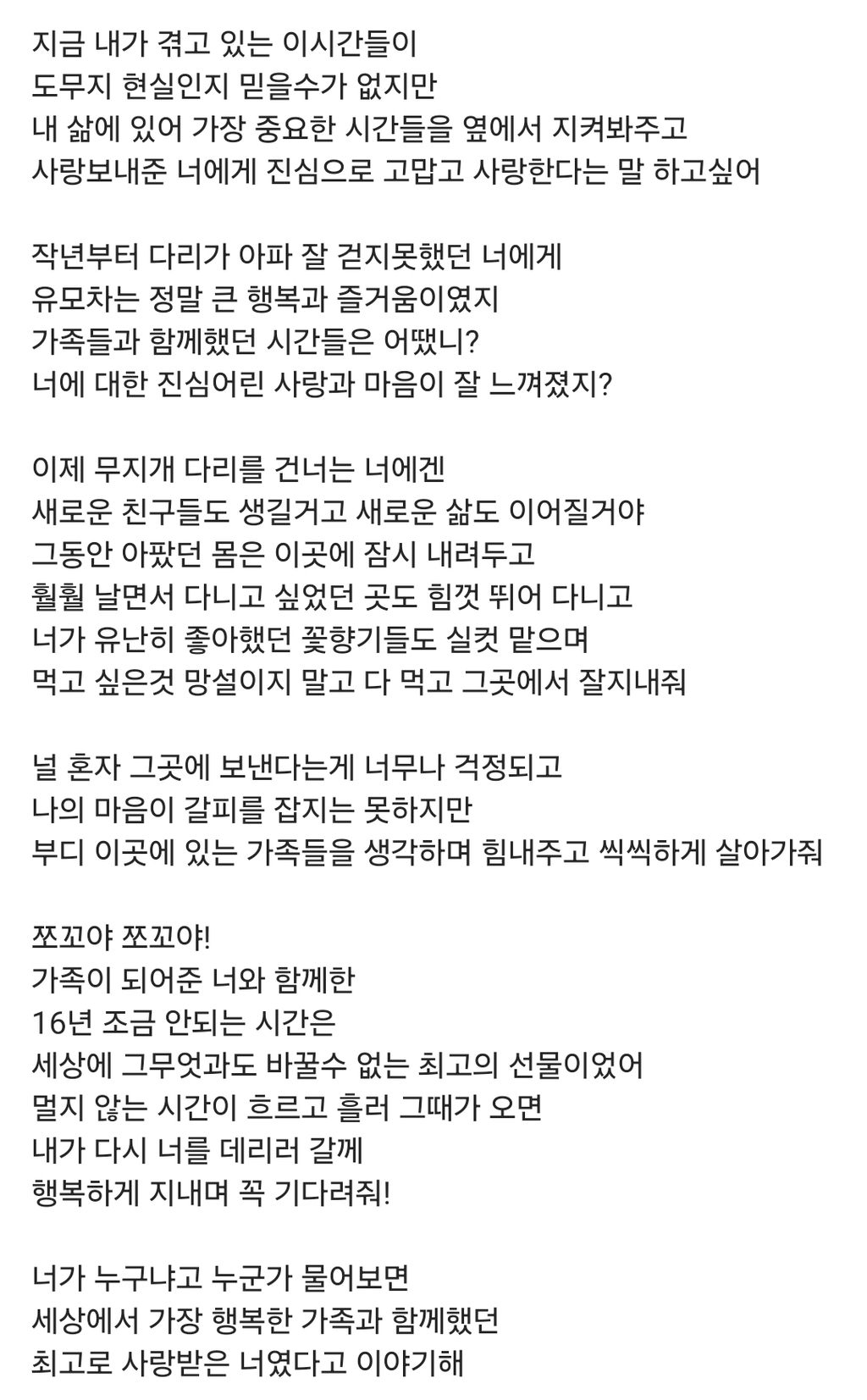 작성자훙냐너알냥 작성시간 26.03.04 글에 너무 사랑이 담겨있어서 슬프다