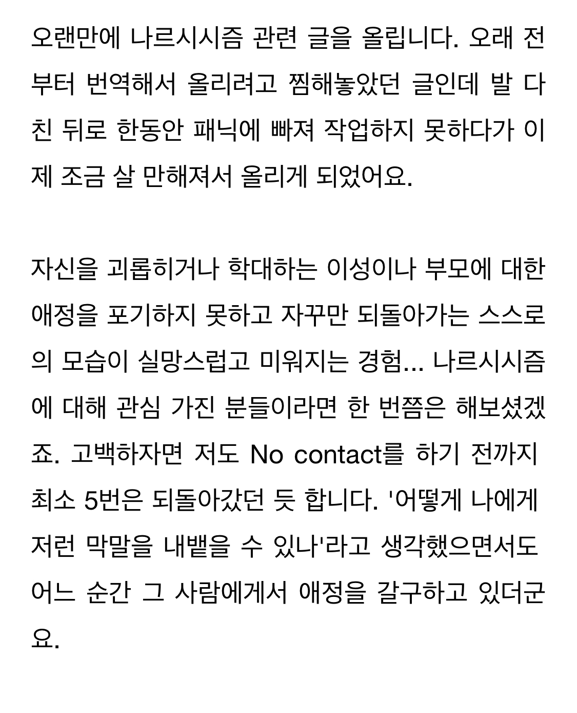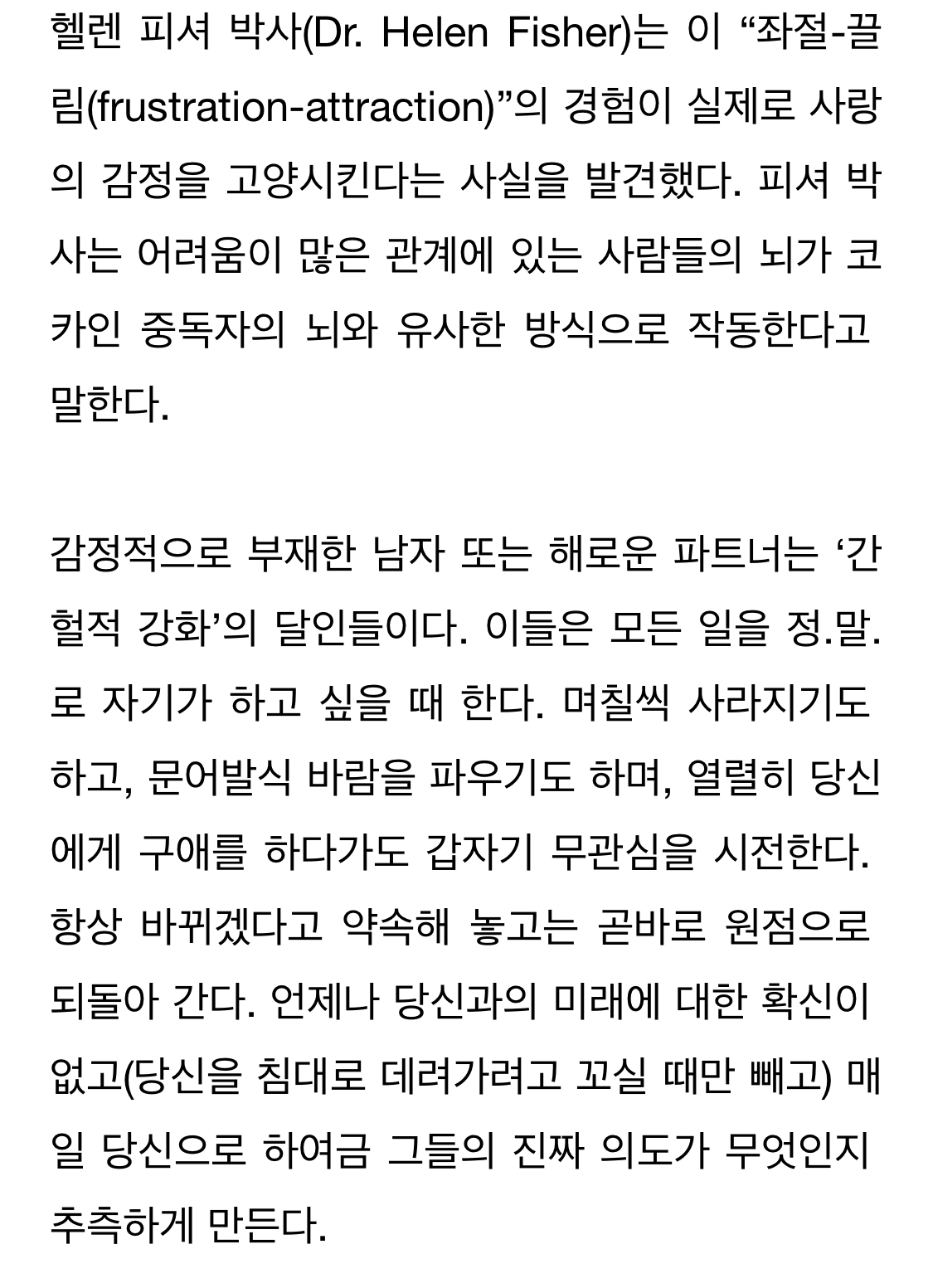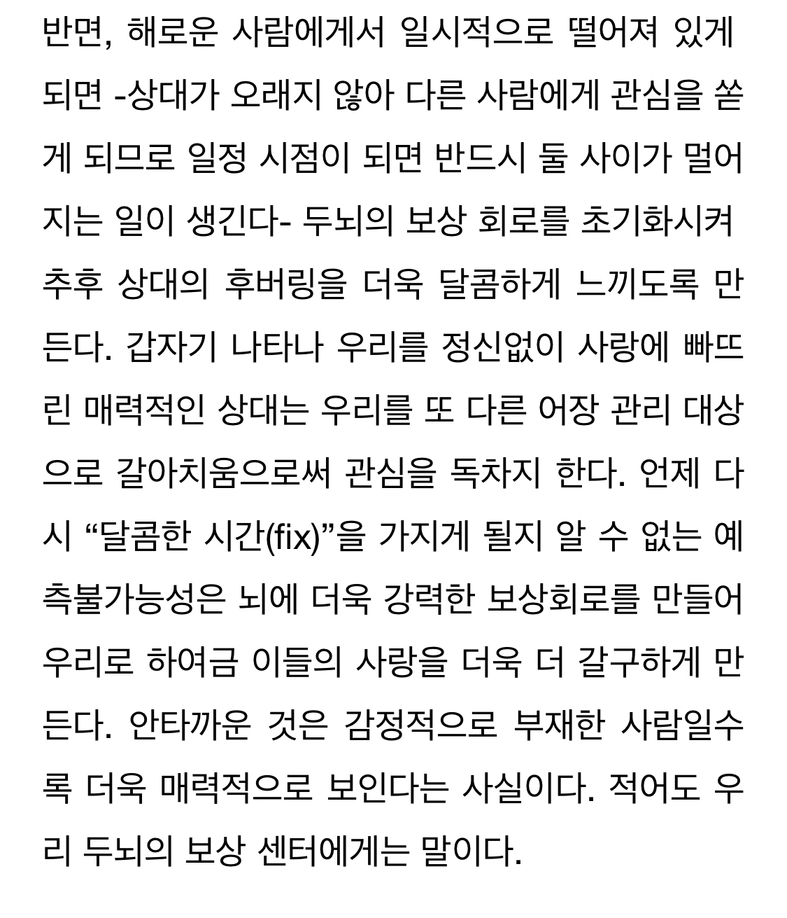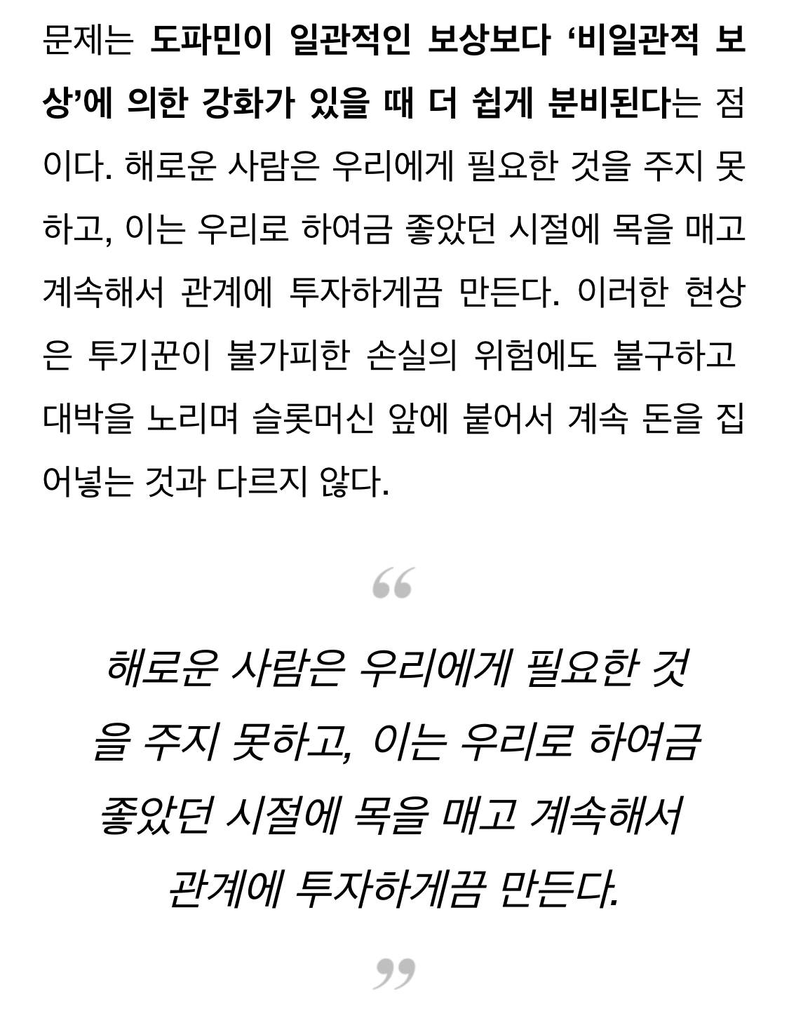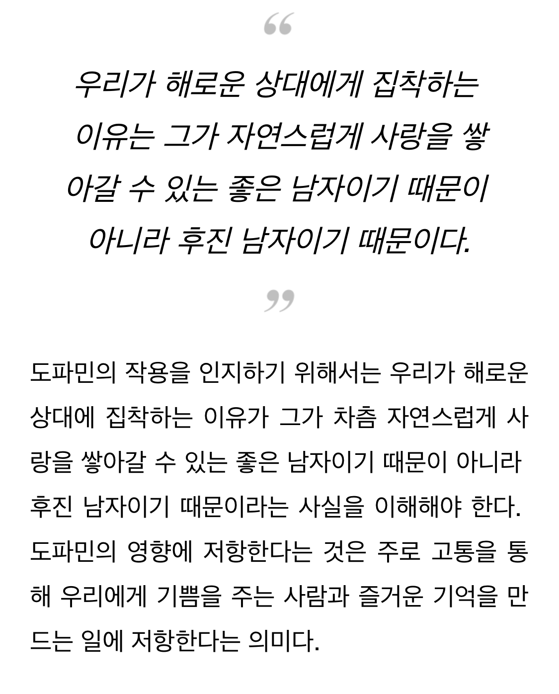 작성자솔피돌핀 작성시간 26.03.04 해로운 사람은 우리에게 필요란것을 주지 못하고 이는 우리로 하여굼 좋았던 시절에 목을 매고 계속해서 관계에 투자하게끔 만든다