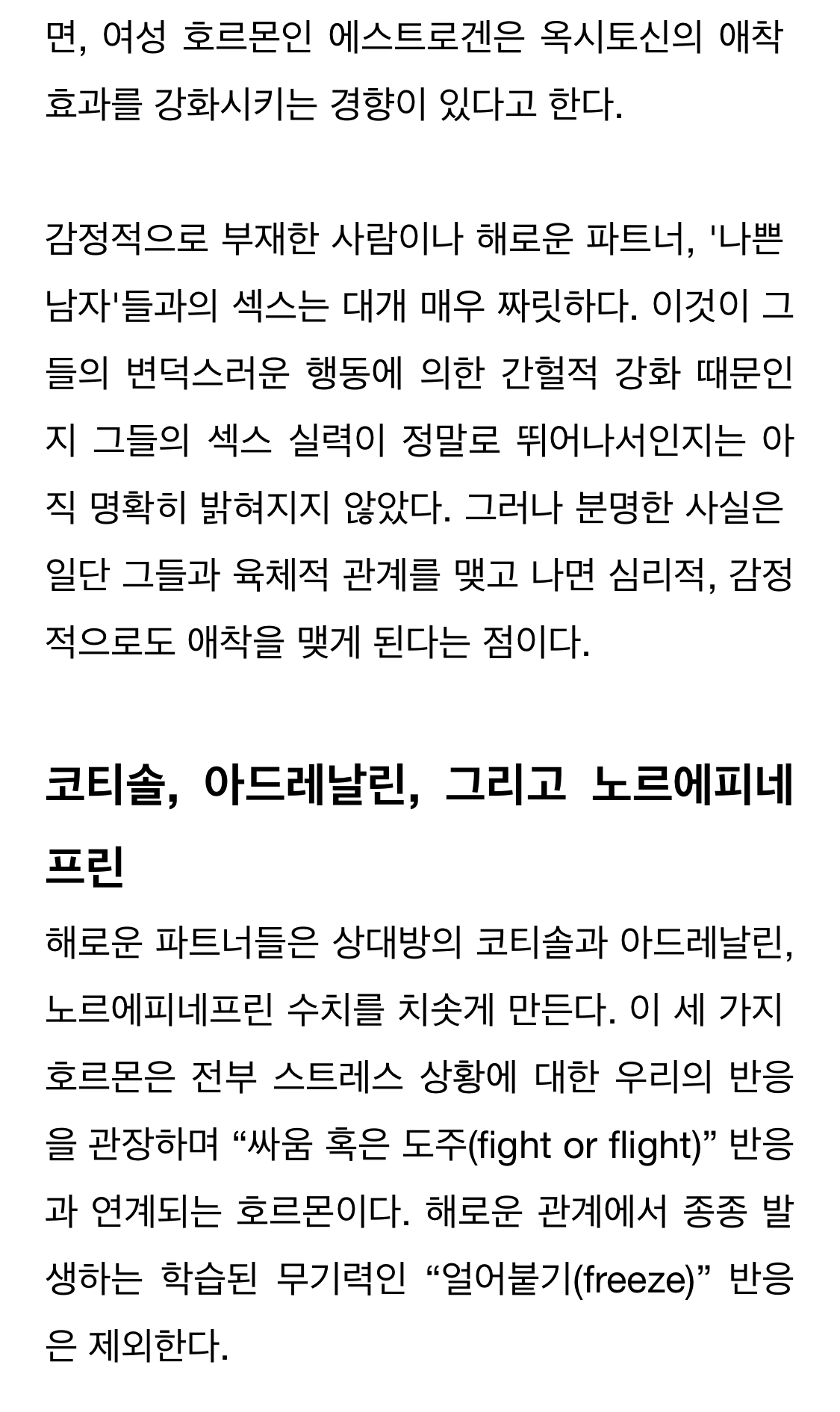 작성자아이보리얼그레이 작성시간 26.03.04 여자가 호르몬적으로 불리하긴 하지만, 저런 관계에 있는 남성 역시 인간이니까 똑같은 경험을 하는 거 아냐? 저런 애들은 똑같이해서 매력으로 후드려패줘야됨