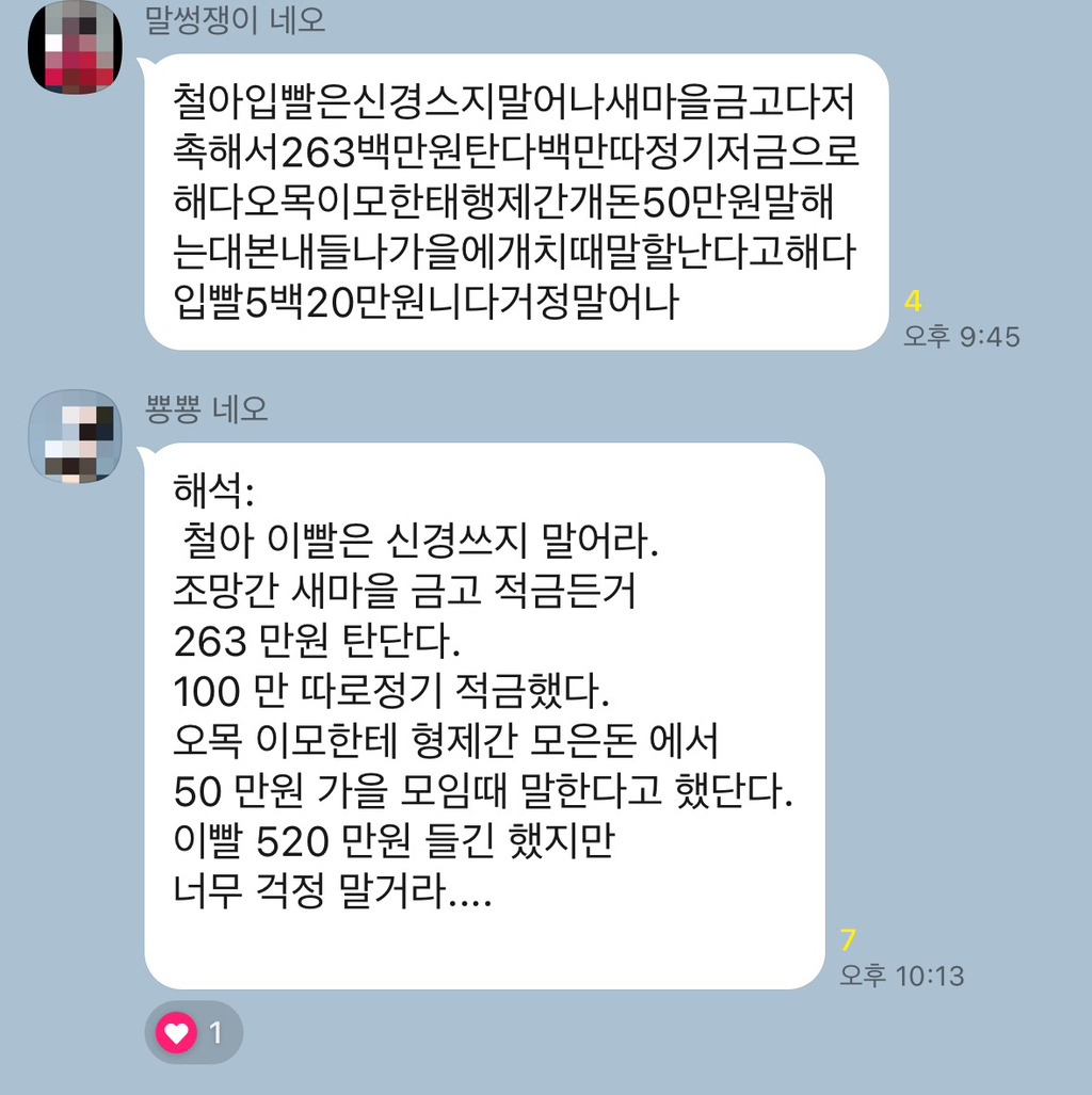 [스크랩] [흥미돋]막내이모남편 단톡에서 자꾸 할머니 말 통역하는거 먼가 웃김 작성자모르는댕산책|작성시간26.03.04|조회수43,482 목록 댓글 35 글자크기 작게가 글자크기 크게가 출처: 원출처 쭉빵2차 더쿠 https://theqoo.net/square/3332212933더쿠 - 막내이모남편 단톡에서 자꾸 할머니 말 통역하는거 먼가 웃김여기를 눌러 링크를 확인하세요theqoo.net할머니가 좋아요 누르셨대 ㄱㅇㅇ 다음검색 스크랩 원문 : *여성시대* 차분한 20대들의 알흠다운 공간 현재 게시글 추가 기능 열기 북마크 공유하기 신고 센터로 신고 댓글 댓글 35 댓글쓰기 답글쓰기 댓글 리스트 작성자살고보니 살만하네 | 작성시간 26.03.04 ㅋㅋㅋㅋㅋㅋㅋㅋㅋㅋ아니 ㅋㅋㅋㅋ 이모부 언어천재 작성자나 6천원 있어요... | 작성시간 26.03.04 제부 통역사네 작성자유말이 | 작성시간 26.03.04 할머님 마음씨도 너무 따숩고올라올때마다 보게됨ㅋㅋㅋ 작성자samk | 작성시간 26.03.04 ㅋㅋㅋㅋㅋㅋㅋㅋㅋㅋㅋㅋㅋㅋ 나도 있고 싶다 저기에 작성자이도저도 아닌애 | 작성시간 26.03.04 이빨 520만원 들긴했지만 걱정말거라.. 댓글 전체보기