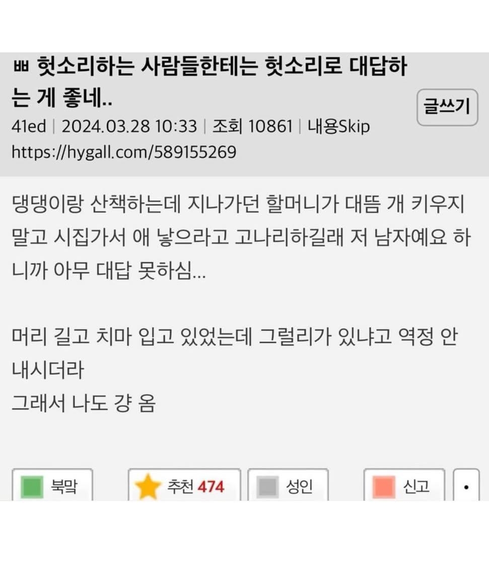 미국갓다가 홈리스가 마트 문열어주고 돈달라길래 월월!!월울ㅇ럴라아얼!!! 이러고 개짖는 소리 내니까 어리둥절해서 감