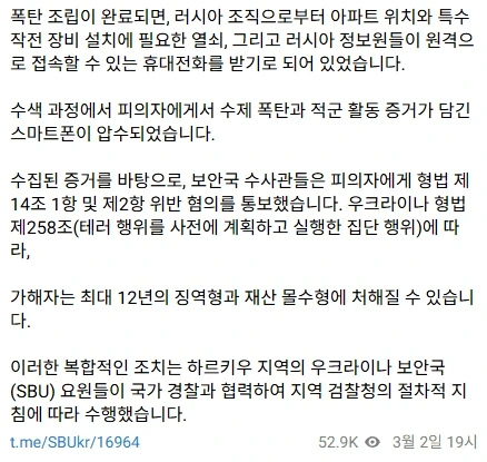 이 수법의 무서운점은 러시아 본국의 요원은 멀쩡하고 체포되도 SNS로 포섭한 우크라이나 현지인만 체포되는거니 러시아로서는 손해가 아예 없음.