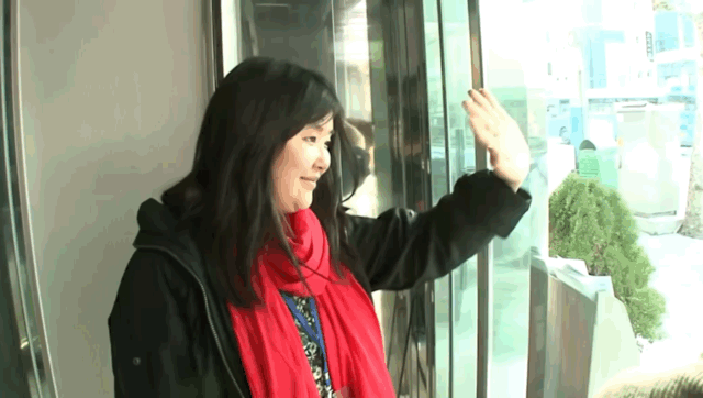 눈을 떼지 못하고 손을 흔드는 원미 씨.
