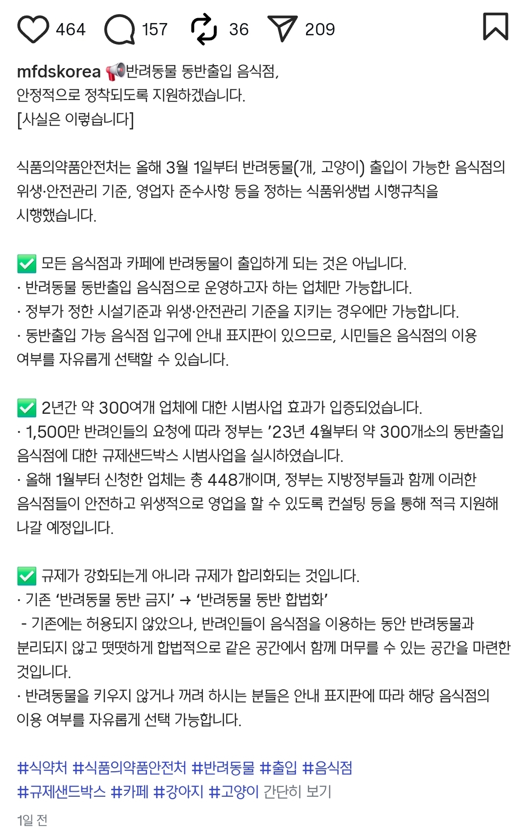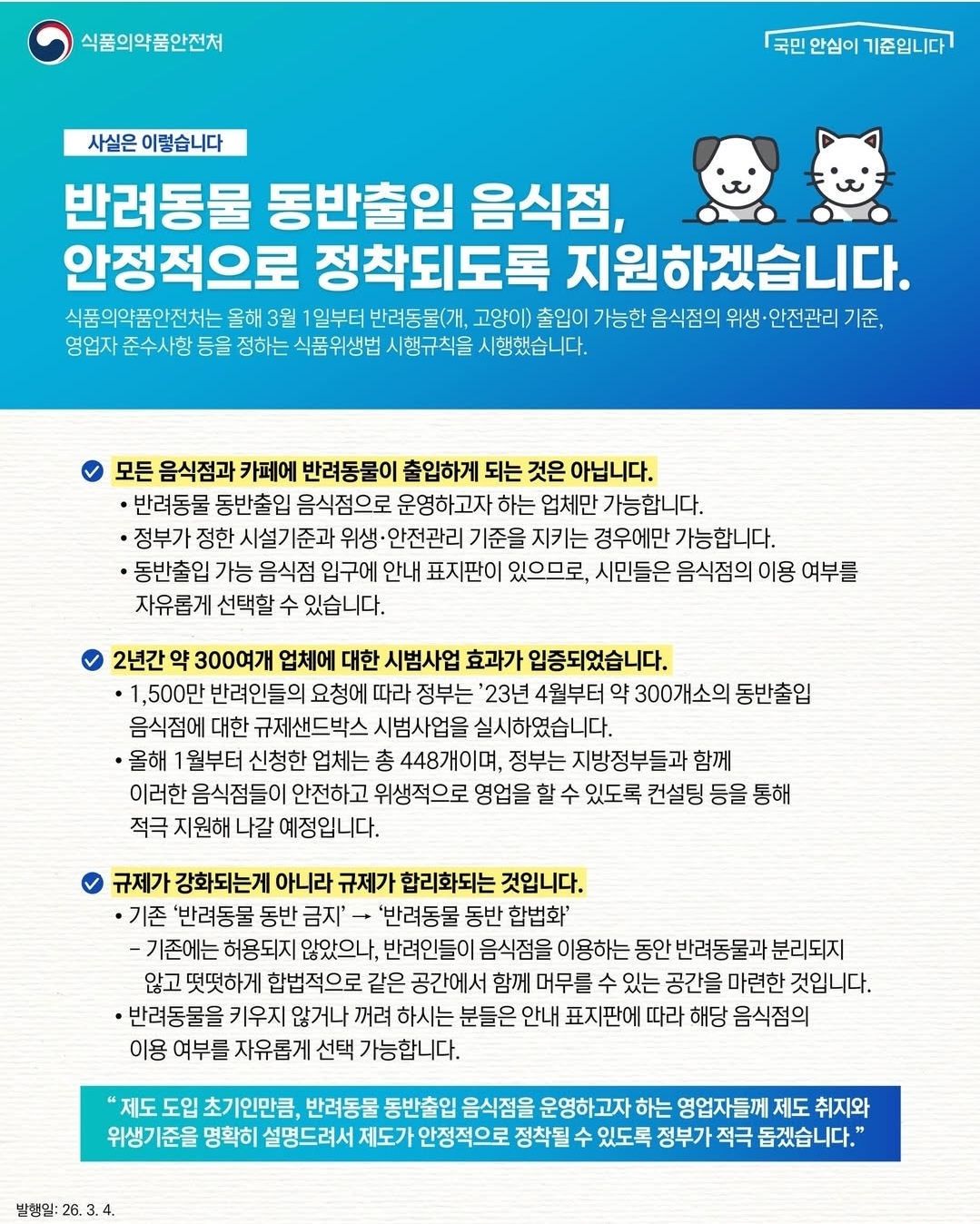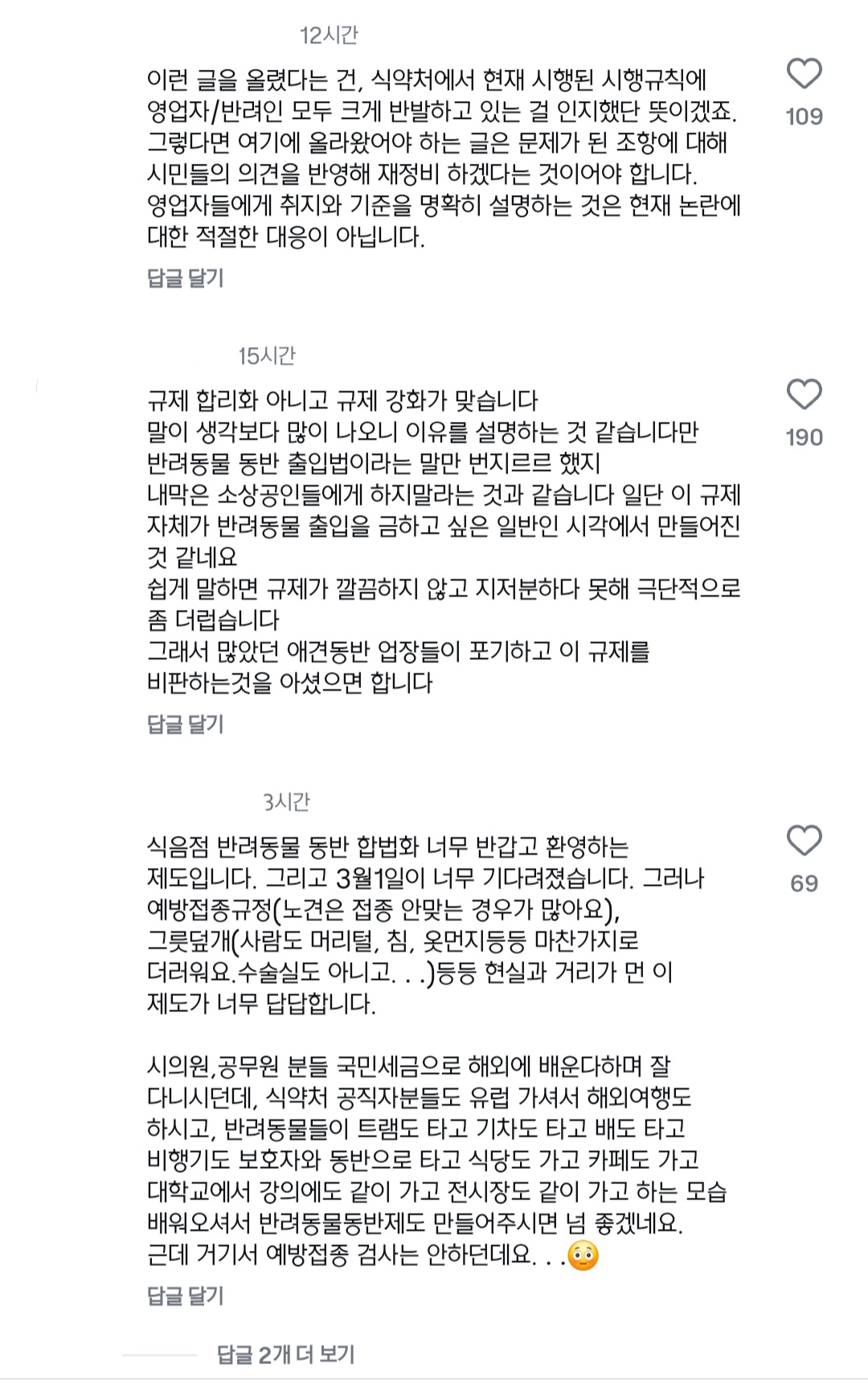 작성자달록잉 작성시간 26.03.06 어쩐지.. 이거 시행되고 다니던 애견동반 식당 2곳 다 금지됐더라ㅠ
