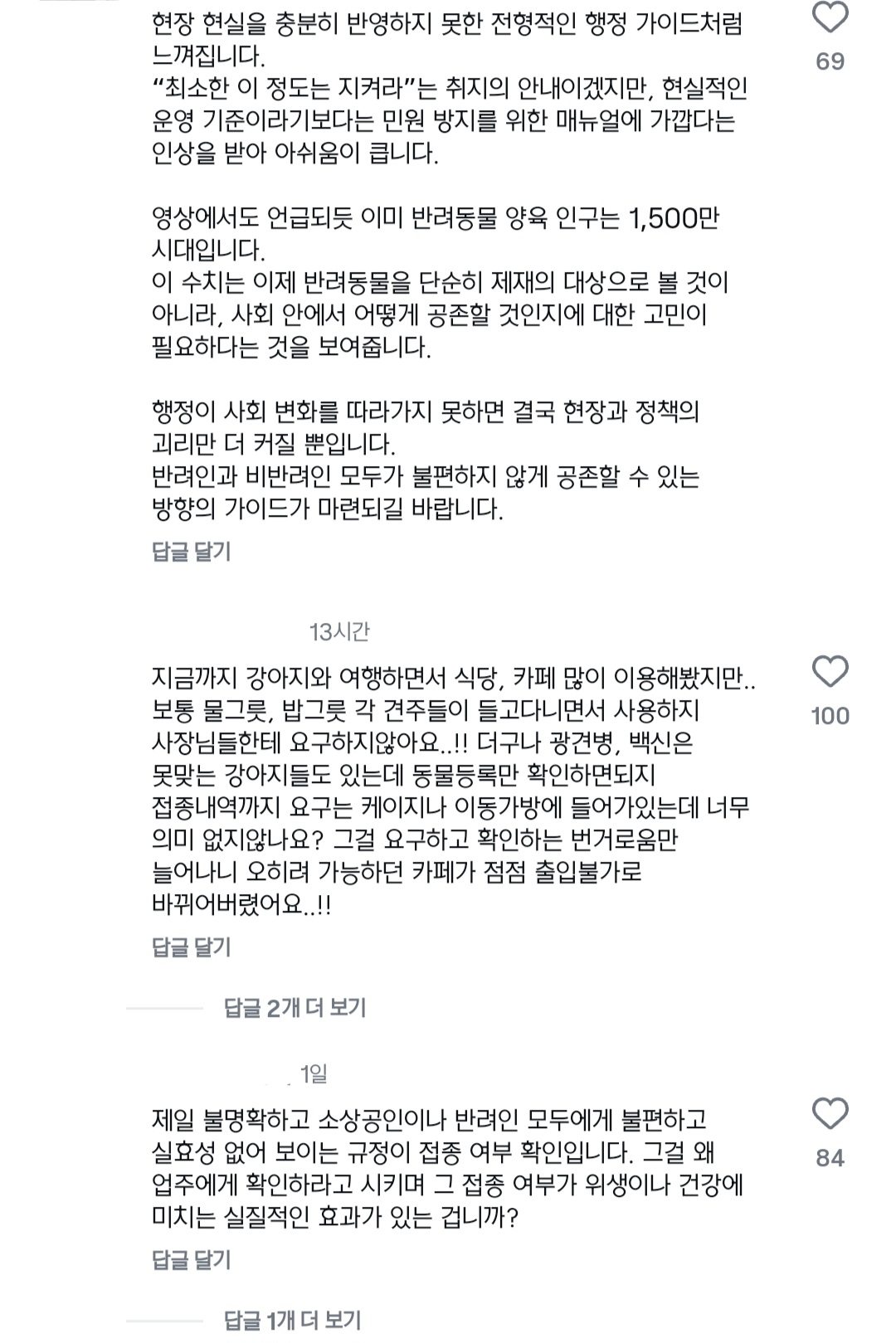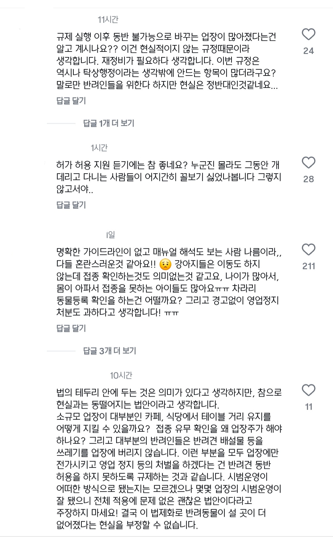 작성자토순토토_모모코코요니 작성시간 26.03.07 반려견은 없지만 너무 현실과 동떨어진 규제&제도라고 생각함 어차피 동반 업소들 오는 견주들은 대부분 매너 칼같이 지키는 사람들이 대부분이던데?