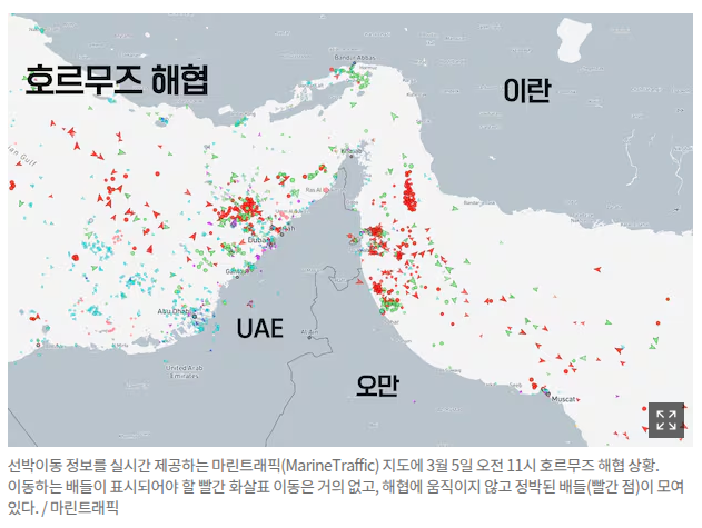현재 전쟁으로 호르무즈 해협에 유조선이 밀려잇음 ㅎ