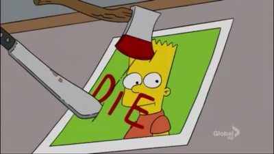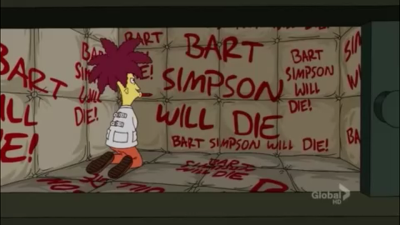 그래서 사이드쇼밥이 바트를 죽이러 오거나 바트가 사이드쇼 밥의 범행을 파헤치는 에피소드가 많아 5시즌2화에서는 사이드쇼 밥이 i kill you 혈서를 바트에게 보내기도 하고...ㅇ0ㅇ