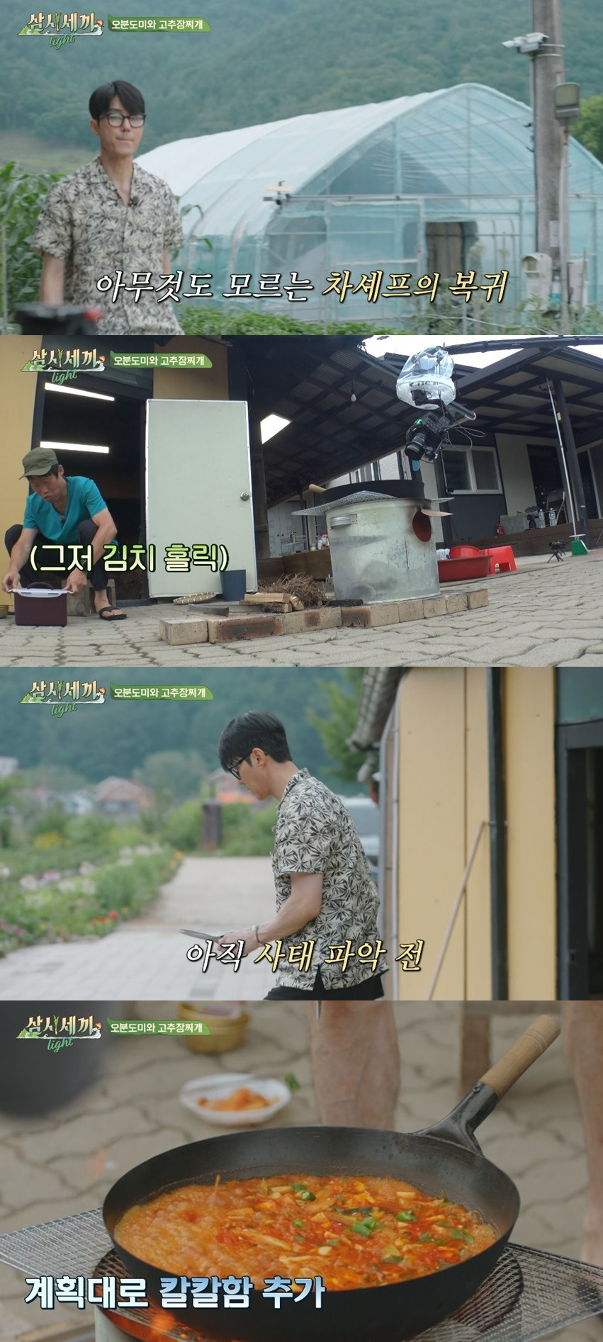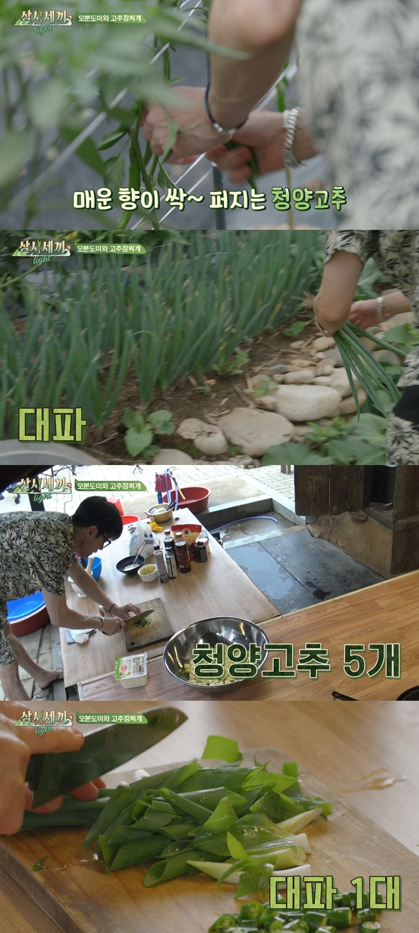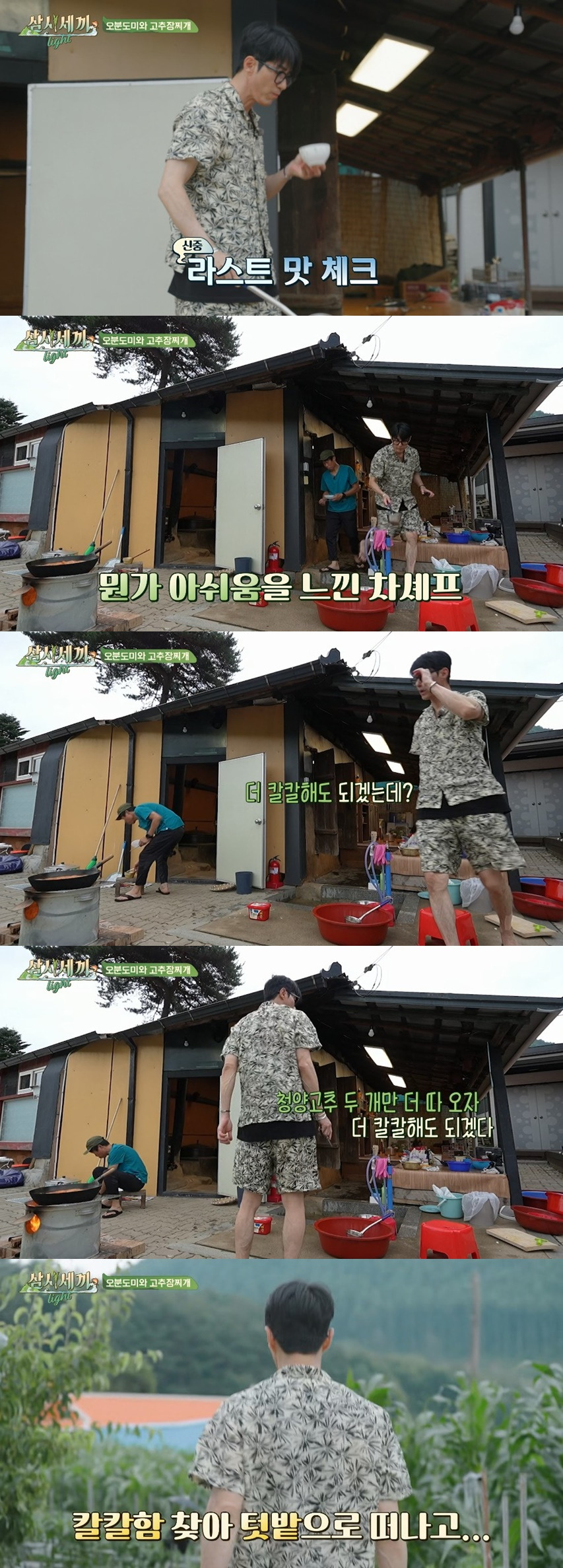 차승원이 맛보더니 청양고추 좀 더 넣어야겠다고 텃밭에 고추 따러 감