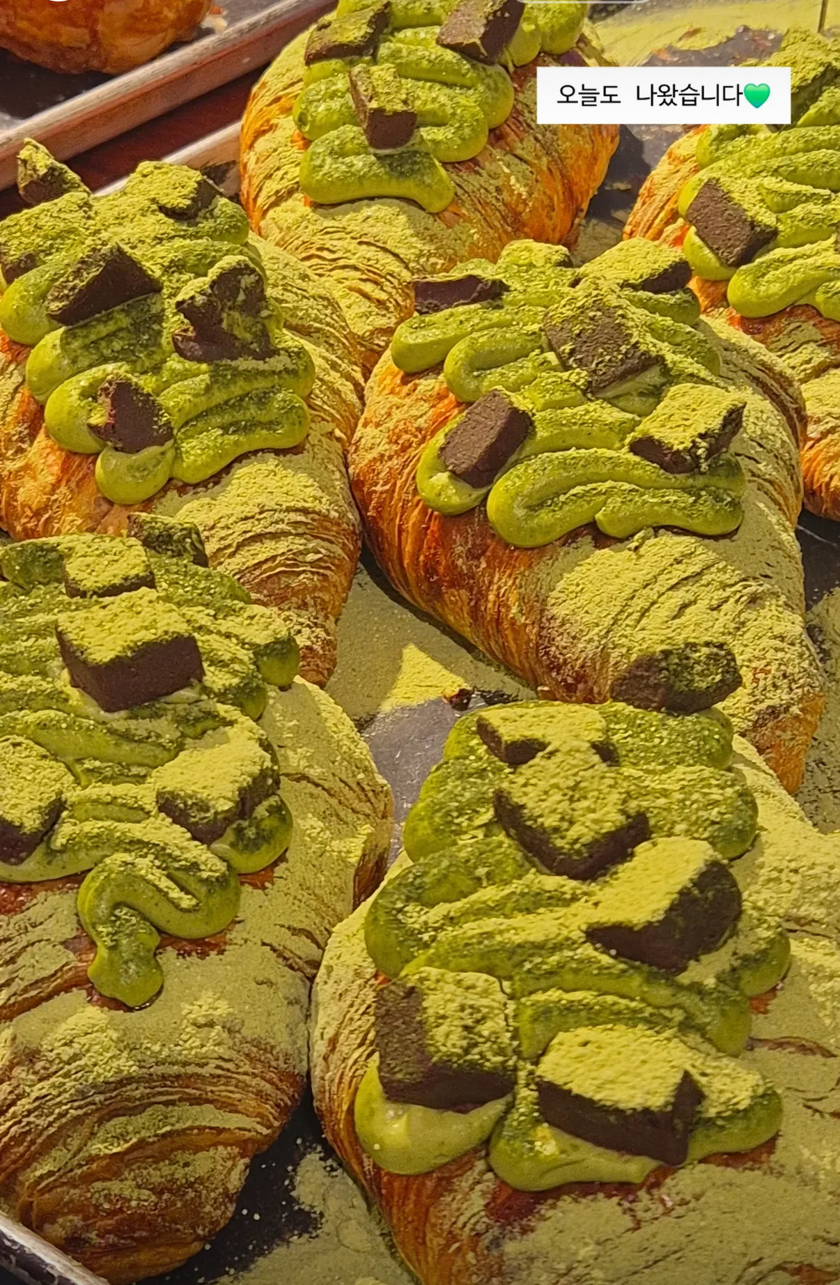 작성자예의있게얘기해 작성시간 26.03.07 이거 진짜 개 미친놈임 크로와상 안좋아하는데 이거땜에 대전 두번다녀옴 저 빵 안에가 다 말차크림인데 어케한건지 존나 하나도 안느끼하고 부드러운 말차우유라떼 입안한가득 먹는기분이였름