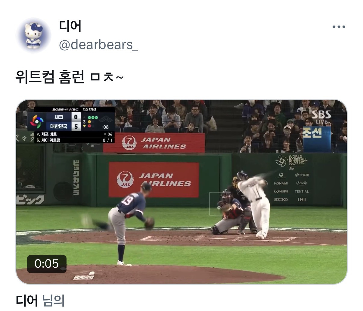 3/5 대한민국 WBC 첫 경기 체코전