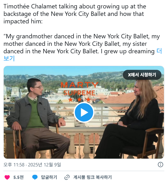 할머니랑 어머니랑 누나가 뉴욕 시티 발레단에서 무용수로 활동했고