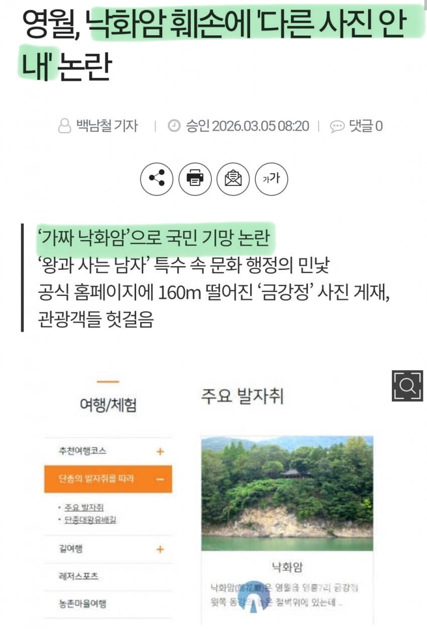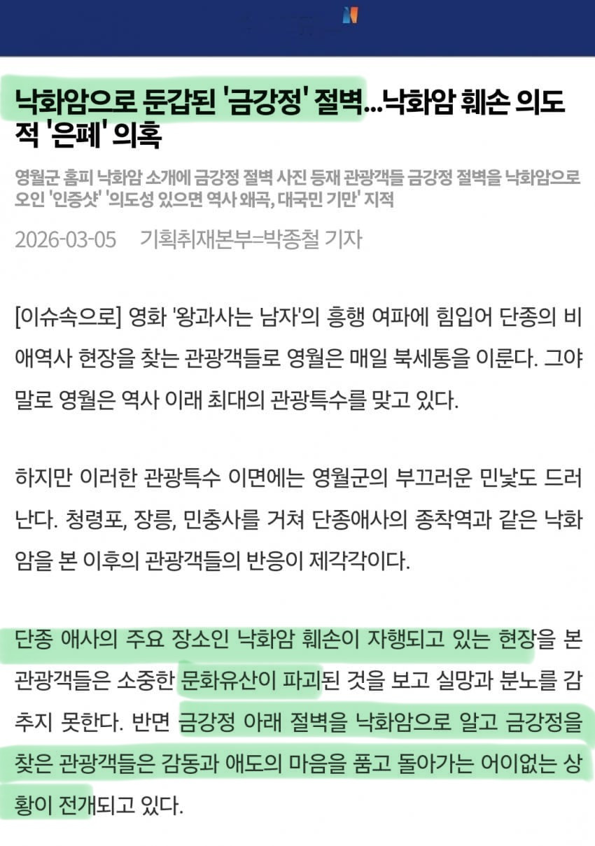 일부러 다른 장소를 낙화암으로 둔갑시켜 낙화암 훼손 사실을 은폐하고 있음