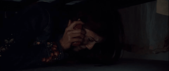 - 침실로 들어가서, 침대 밑에 숨어.