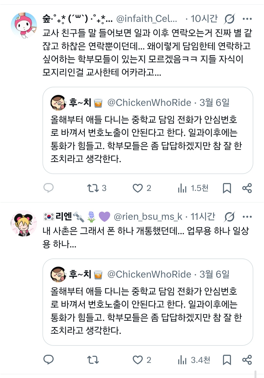 작성자아우와 작성시간 26.03.08 용건잇으면 학교 교무실로 전화하지않앗엇나ㅠ
