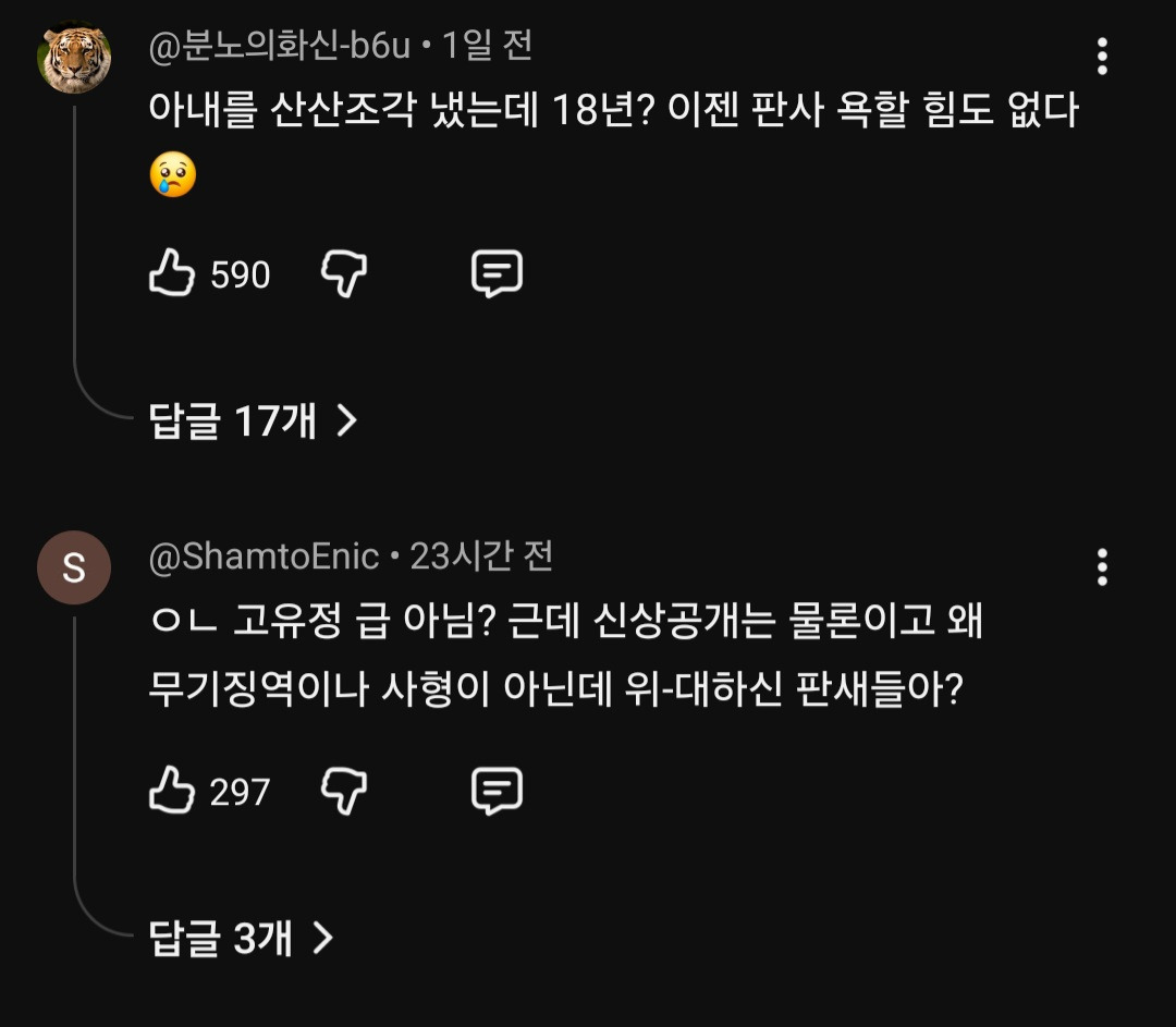 [칵.cxxx](텍스트주의) 아내 살해 후 그라인더로 훼손하고 유기해 시신도 못 찾게 한 남편이 받은 형량.jpg 작성자Sunmoonstar02|작성시간26.03.08|조회수23,282 목록 댓글 91 글자크기 작게가 글자크기 크게가 출처: https://theqoo.net/square/4118366850(앞부분+체포,수사 과정 등등 많이 생략함)사건 발생 2007년이라 (감옥에서 안 뒤졌다면) 작년에 출소함https://youtu.be/WmfKdt1Bu68?si= 다음검색 현재 게시글 추가 기능 열기 북마크 공유하기 신고 센터로 신고 댓글 댓글 91 댓글쓰기 답글쓰기 댓글 리스트 작성자리려루로라 | 작성시간 26.03.09 하 진짜 이딴걸 판사라고... 작성자요키는사랑 | 작성시간 26.03.09 18????? .... 작성자정중한또라이 | 작성시간 26.03.09 진짜 시발 욕나오네 아 작성자오렌지아워 | 작성시간 26.03.09 미친 이게 무기징역이 아니면 뭐란 말임 작성자Um.. | 작성시간 26.03.10 평소에도 폭행하다가 죽였으니까 고유정보다 더 심한데 고유정은 무기징역, 이 사건은 18년ㅋㅋㅋ 심지어 이 사건 처음 알았다 ㅅㅂ 댓글 전체보기