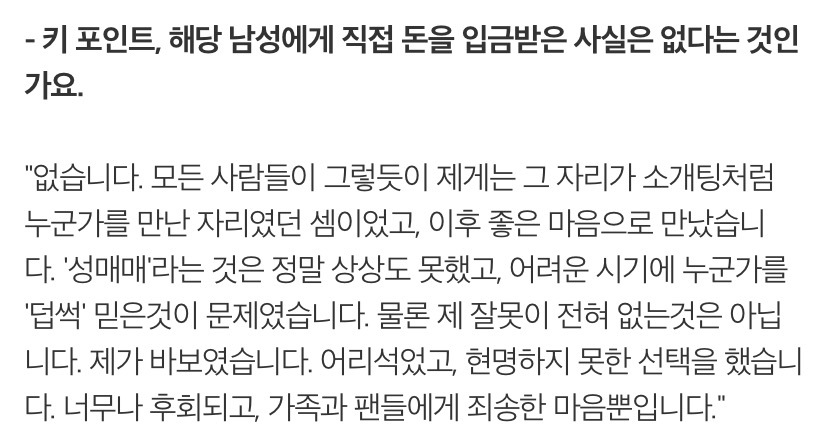 법적으로 성매매임을 피해갈수없음을 인정한것