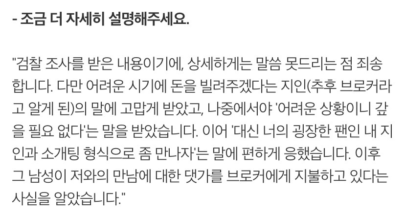 그 상대방 남자에게 브로커가 돈을 받고있었던것...