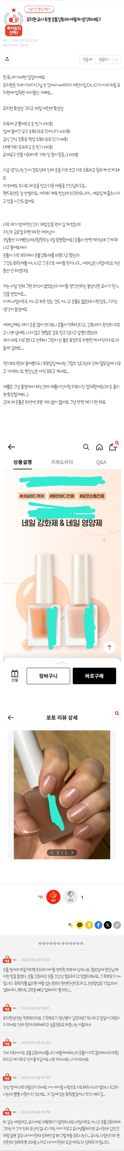 [흥미돋]유치원 교사 투명 손톱강화제 어떻게 생각하세요? 작성자맥커피|작성시간26.03.08|조회수42,366 목록 댓글 305 글자크기 작게가 글자크기 크게가 출처: https://m.pann.nate.com/talk/375284653?order=B유치원 교사 투명 손톱강화제 어떻게 생각하세요? | 네이트 판결혼/시집/친정 : 한국나이 5세반 담임이에요 유치원은 5세~7세가 다닐 수 있어서 4세까지 어린이집 다니다가 이제 처음 유치원에 입학한 아이들인 거예요.. 유치원 특성상 그리고 제일 어린반 ...pann.nate.com 다음검색 현재 게시글 추가 기능 열기 북마크 공유하기 신고 센터로 신고 댓글 댓글 305 댓글쓰기 답글쓰기 댓글 리스트 작성자마음으로낳은짐승연하남 | 작성시간 26.03.09 아 진짜 지랄하지 말라 그래 샤갈 작성자만우절죠르디 | 작성시간 26.03.09 그냥 집에서 키우라해 작성자알파캇소 | 작성시간 26.03.09 하.. 저정도면 애를 밖에는 왜 데리고나가.. 검은색발랐다고 민원넣는건 본적있는데 더 심해지네 작성자즐겨보자 | 작성시간 26.03.09 저거 그냥 손톱 로션아냐...? 네일아트해도 솔직히 ㄱㅊ을듯 작성자연아퀸 | 작성시간 26.03.09 별지랄들이네 진짜 댓글 전체보기