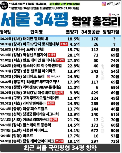 [흥미돋]서울 34평 청약 시세 작성자허거덩덩스|작성시간26.03.08|조회수19,239 목록 댓글 70 글자크기 작게가 글자크기 크게가 출처: 여성시대 (허거덩덩스)마곡은 토지포함 아니라서 4억로또돼도 청약 못함 다음검색 현재 게시글 추가 기능 열기 북마크 공유하기 신고 센터로 신고 댓글 댓글 70 댓글쓰기 답글쓰기 댓글 리스트 작성자protection | 작성시간 26.03.08 ㅋㅋㅋ..10억이 어딨어..ㅅㅂ 작성자보검복지부리또 | 작성시간 26.03.08 의식주에서 중요한 주를 도대체 누가 가질 수 있는거냨ㅋㅋㅋㅋㅋㅋ 부럽다 부러워 작성자칷케케켘 | 작성시간 26.03.08 진짜 청약이 무슨 의미야 ㅋㅋ 작성자청양마요타코야끼 | 작성시간 26.03.09 다들 나빼고 십억씩은 있나봐 작성자까망머플러 | 작성시간 26.03.09 미쳤네 ㅋㅋ 댓글 전체보기