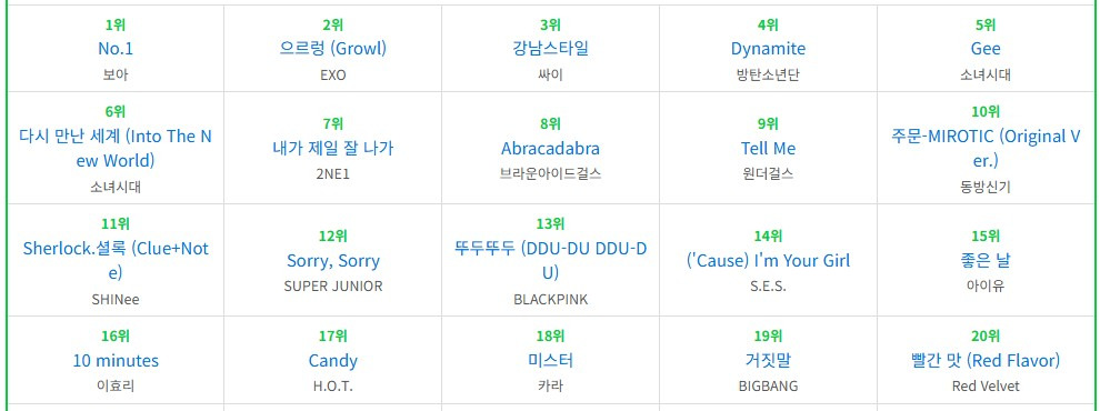[흥미돋]멜론 선정 케이팝 역대 명곡 TOP20 작성자두쫀쿠케이크|작성시간26.03.08|조회수12,168 목록 댓글 72 글자크기 작게가 글자크기 크게가 출처: https://theqoo.net/square/4119189593 거를 타선 X(다고 생각했는데 진짜 제왑돌들 없네.. 재미로 봐주셈) 다음검색 현재 게시글 추가 기능 열기 북마크 공유하기 신고 센터로 신고 댓글 댓글 72 댓글쓰기 답글쓰기 댓글 리스트 작성자럭키비키 내 좌우명 | 작성시간 26.03.09 다이너마이트는 좀...,,, 방탄 노래 중에 젤 ㅂㄹ라고 생각하는 노래,, 작성자허거덩거덩스댄스 | 작성시간 26.03.09 투애니원 본문곡보다 아이돈케어가 더 좋았는데.. 아숩 작성자배그입문 | 작성시간 26.03.09 뉴진스왜없음 작성자매링매링 | 작성시간 26.03.09 거짓말이랑 텐미닛이 생각보다 순위낮은거같음 글고 빨간맛은 메가히트까진 아닌거같은데... 작성자심하안말 | 작성시간 26.03.09 제왑 원걸! 댓글 전체보기
