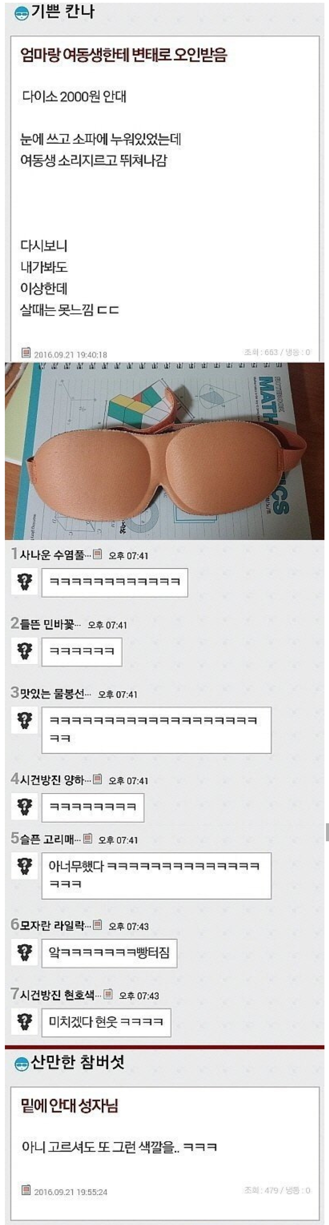 [배꼽의행방]다이소에서 산 레전드 수면안대 작성자계절 틈에 잠시 피는 낯선꽃처럼|작성시간26.03.08|조회수17,193 목록 댓글 28 글자크기 작게가 글자크기 크게가 출처: https://m.cafe.daum.net/subdued20club/ReHf/5595015?svc=cafeapp다이소에서 산 레전드 수면안대출처: 여성시대 바나나스플릿구슬m.cafe.daum.net미방노답3형제까만안대를 산 여시후기로 마무리 다음검색 현재 게시글 추가 기능 열기 북마크 공유하기 신고 센터로 신고 댓글 댓글 28 댓글쓰기 답글쓰기 댓글 리스트 작성자쫑쿨 | 작성시간 26.03.08 올해 최대로 웃음😎 작성자비격진천뢰(飛擊震天雷) | 작성시간 26.03.09 ㅋㅋㅋㅋㅋㅋㅋㅋㅋㅋㅋㅋㅋㅋㅋㅋㅋ 작성자닉네임입력웅앵앵 | 작성시간 26.03.09 볼때마다 웃김ㅋㅋㅋㅋㅋㄱㅋㅋㅋㅋㅋㅋㅋ 작성자맹고스므듸 | 작성시간 26.03.09 개웃기다 아 작성자북마크용 | 작성시간 26.03.13 새갈ㅋㅋㅋㅋㅋㅋㅋㅋㅋㅋ그나마 살색 ㅠ 댓글 전체보기