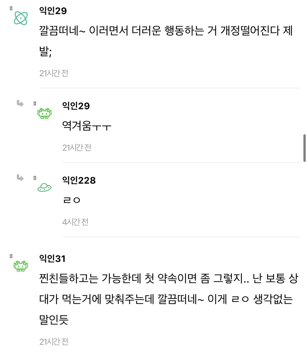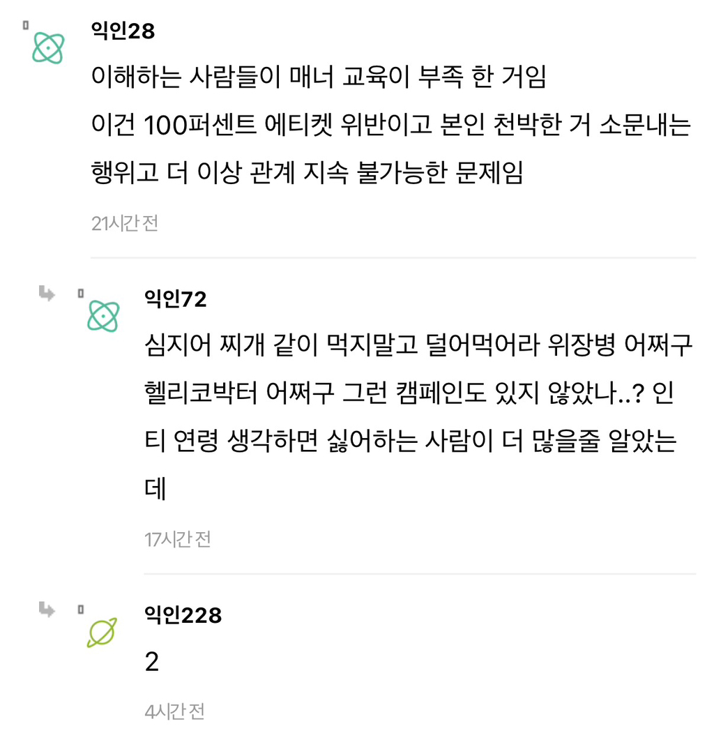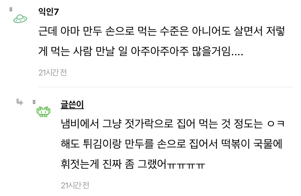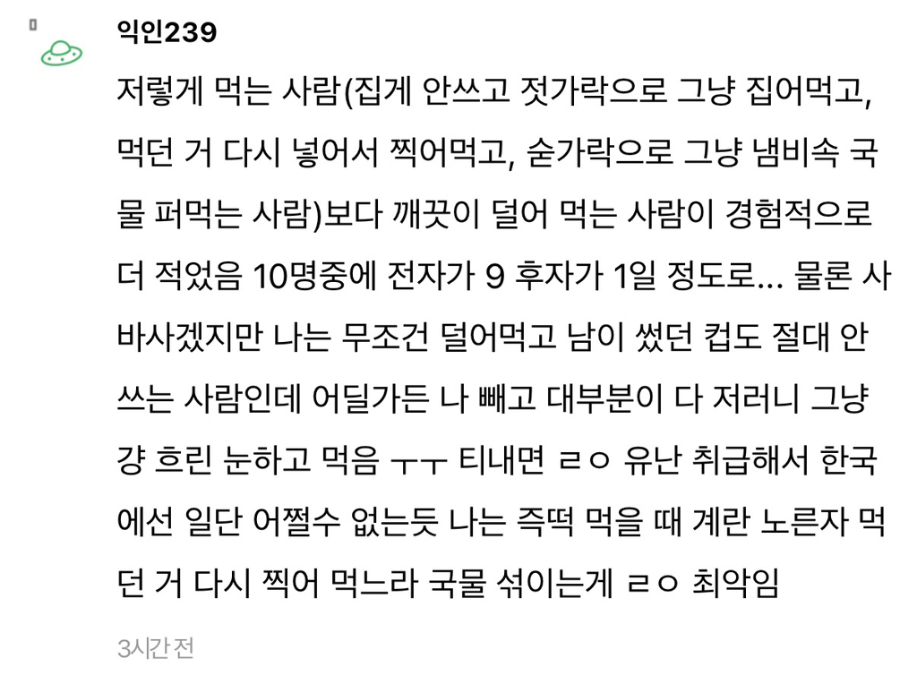 [흥미돋]친구랑 즉석떡볶이 먹는데 너무 비위상했어ㅠㅠ... 작성자희원이멸치먹어라|작성시간26.03.08|조회수121,289 목록 댓글 275 글자크기 작게가 글자크기 크게가 출처: https://www.instiz.net/name/65833076 다음검색 현재 게시글 추가 기능 열기 북마크 공유하기 신고 센터로 신고 댓글 댓글 275 댓글쓰기 답글쓰기 댓글 리스트 작성자Lovin you | 작성시간 26.03.10 첨부터 허락받고 공유하고 먹거나 한명이 난 좀...하면 따로먹고 보통 그러지않나? 난 내주변에 근데 절케 예민한사람 본적이 없음... 작성자Lacan | 작성시간 26.03.10 나는 친구면 괜찮은데 상대한테 먼저 싫어하면 안 하는 게 맞지 작성자세일러 코스모스 | 작성시간 26.03.16 으 작성자지독한얼빠 | 작성시간 26.03.19 배려가 부족하네 작성자이름뭘로하지 | 작성시간 26.03.19 아 더러워 매너없어 댓글 전체보기