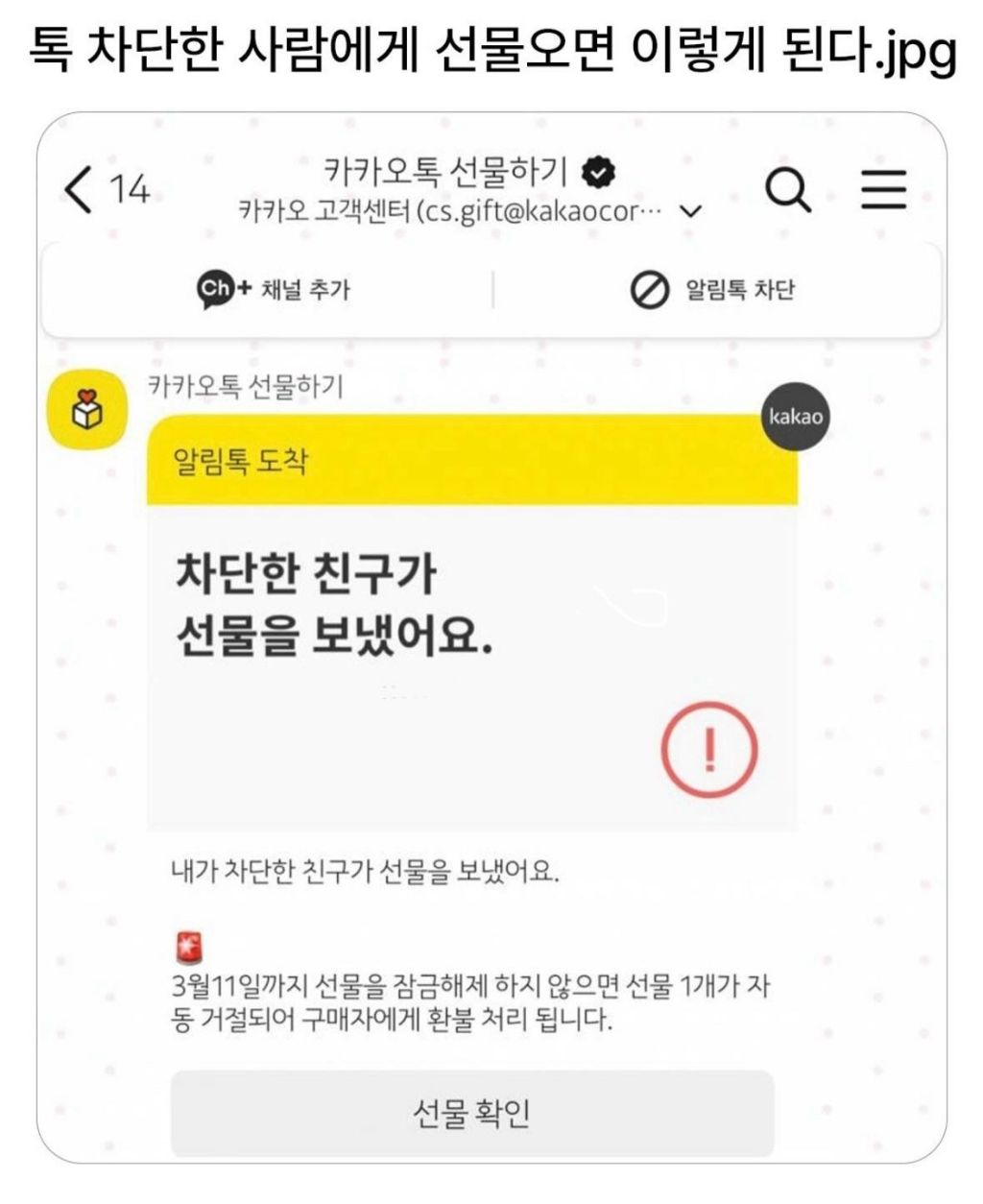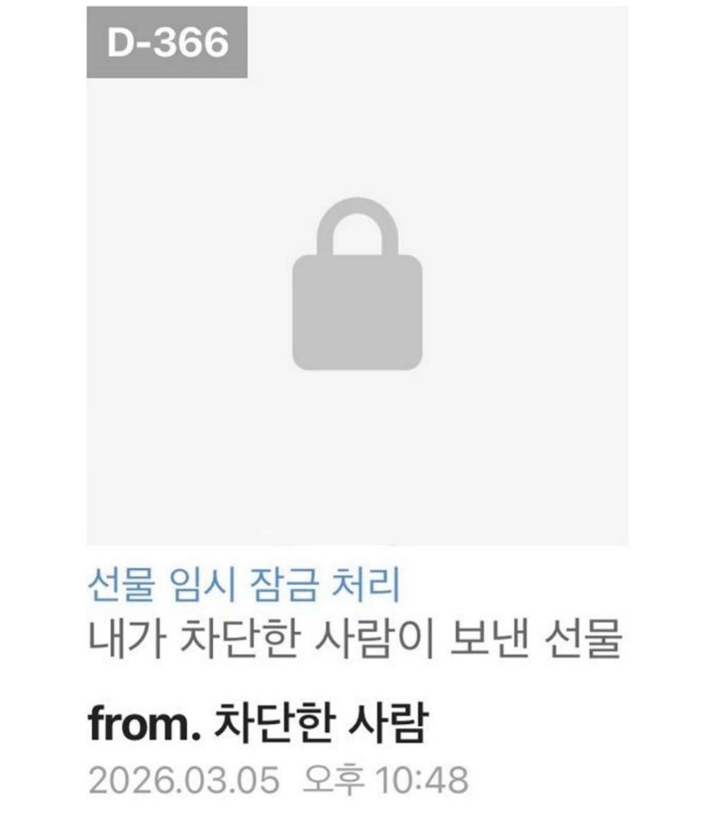 [흥미돋]카톡 차단한 사람한테 선물오면 이렇게 뜬다. 작성자오수정크리스탈|작성시간26.03.08|조회수104,648 목록 댓글 13 글자크기 작게가 글자크기 크게가 출처: 여성시대 오수정크리스탈 다음검색 현재 게시글 추가 기능 열기 북마크 공유하기 신고 센터로 신고 댓글 댓글 13 댓글쓰기 답글쓰기 댓글 리스트 답댓글 작성자물 흘러가듯 자연스럽게 | 작성시간 26.03.09 J’ai déjà tout 참고로 캘린더에 떠도 숨김해놨을수도 있음! 답댓글 작성자물 흘러가듯 자연스럽게 | 작성시간 26.03.09 J’ai déjà tout 마쟈ㅋㅋ 작성자뤿킧 | 작성시간 26.03.08 구남친한테 한번 받아본적 있어서 앎....ㅋㅋㅋㅋㅋ 작성자띠띠송 | 작성시간 26.03.08 개웃기닼ㅋㅋㅋ 작성자부사사과 | 작성시간 26.03.09 헐 댓글 전체보기