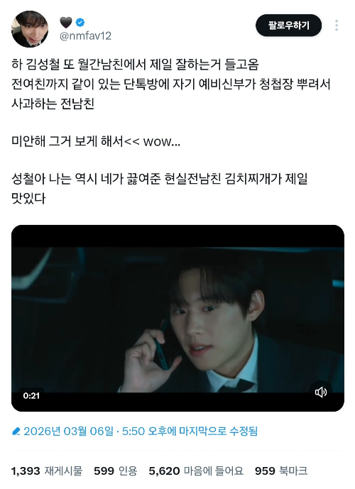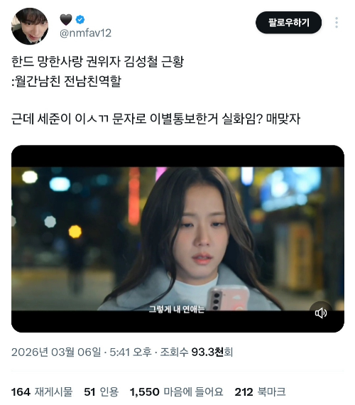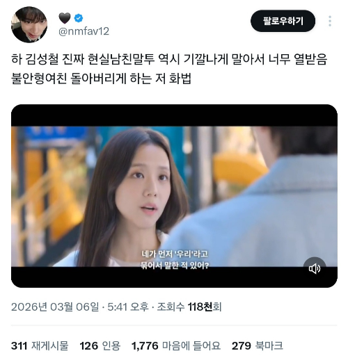 (트위터 캡쳐 누르면 링크 동영상으로 이동)