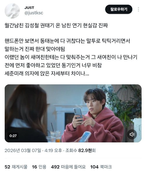 서강준 같은 가상남친 만나면서도 전남친 생각하는것까지 현실적이라 은근히 몰입한 사람들이 많음
