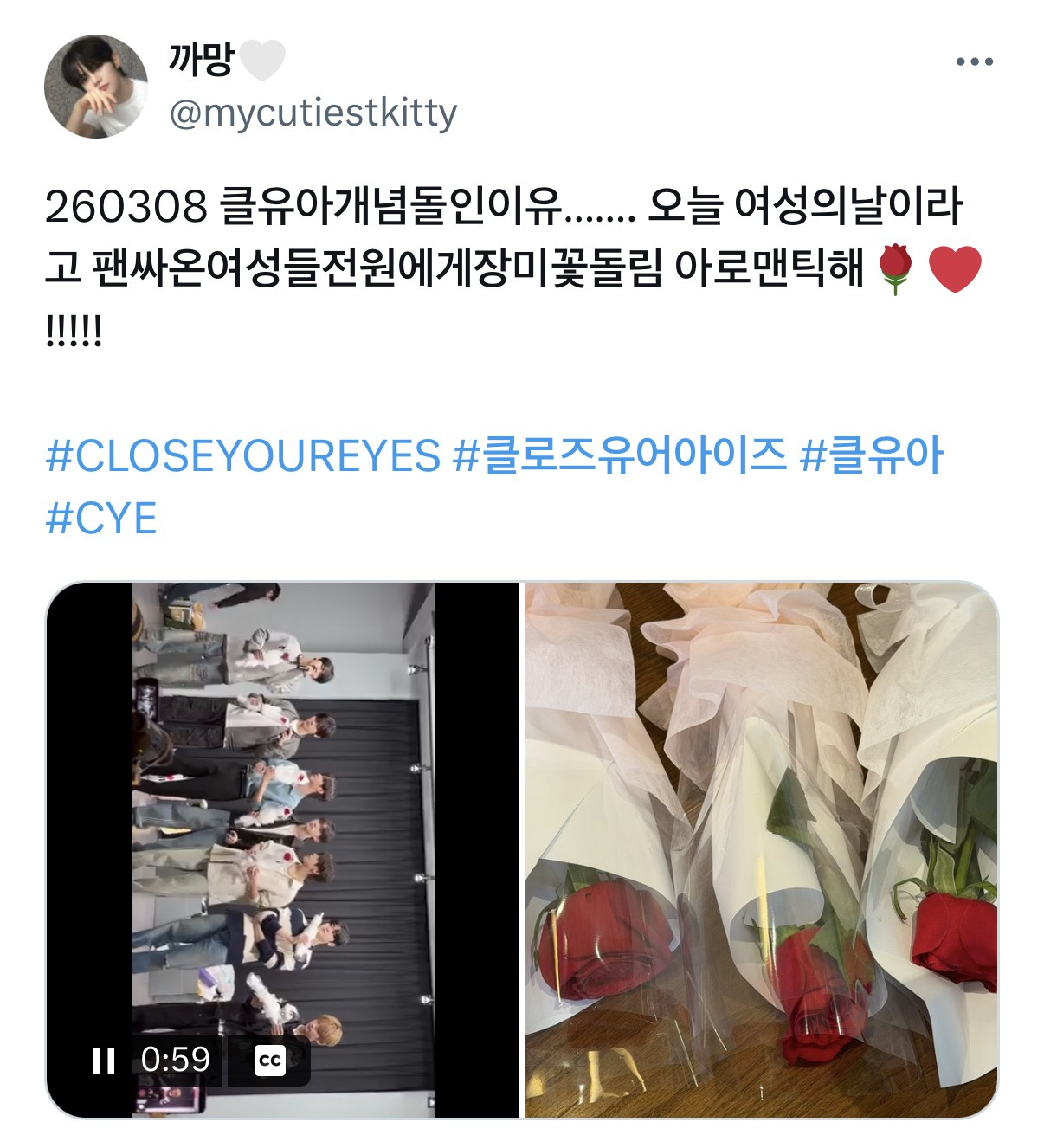 팬싸에서 팬들한테 장미꽃 나눠줬다고 함