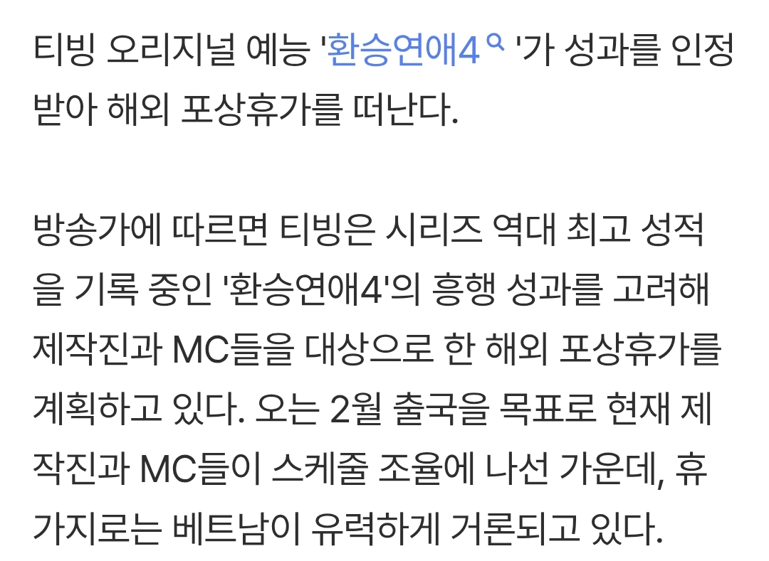 [기타]제작진, 엠씨들만 포상휴가 갔다온 환승연애4 작성자오레옹|작성시간26.03.09|조회수108,525 목록 댓글 352 글자크기 작게가 글자크기 크게가 출처: 여성시대 (오레옹)출연자들은 욕받이 시켜놓고 자기들끼리만 쫀득하게 포상휴가 갔다옴 다음검색 현재 게시글 추가 기능 열기 북마크 공유하기 신고 센터로 신고 댓글 댓글 352 댓글쓰기 답글쓰기 댓글 리스트 작성자국밥은 못참지 | 작성시간 26.03.17 오.. 제작진들 ㅈㄴ웃기네 작성자히힛힛힛히 | 작성시간 26.03.17 패널진짜 없어도되는롤인데.. 작성자분모자 | 작성시간 26.03.19 ㅋㅋㅋㅋㅋㅋㅋㅋㅋㅋ 아니 근데 본인들이 주인공인척하는거 웃기긴 하다 작성자우나기 살몬스킨롤 | 작성시간 26.03.19 패널나오면 돌리기 바빳고만..ㄹㅇ 감다뒤 작성자하늘보리강아지 | 작성시간 26.03.20 와.....얼탱무 제작진은 가는거 맞는데 출연자대신 패널이 왜감? ㅋ 댓글 전체보기