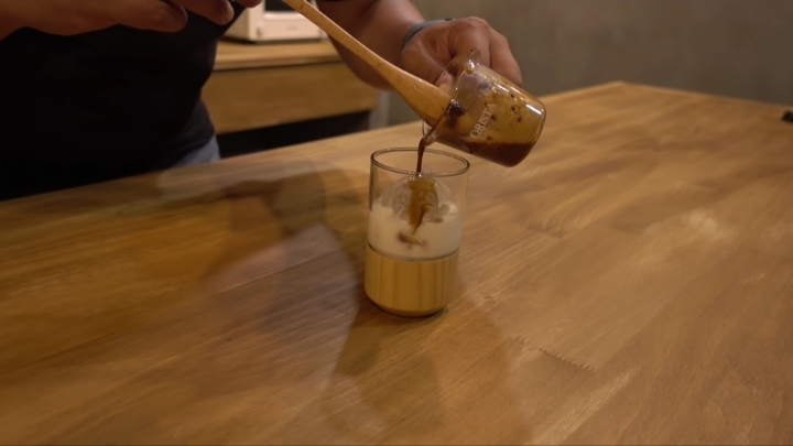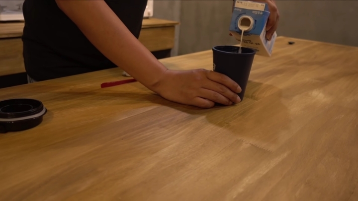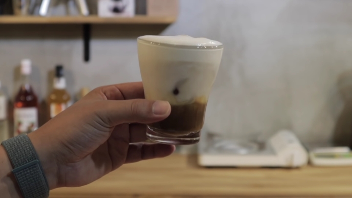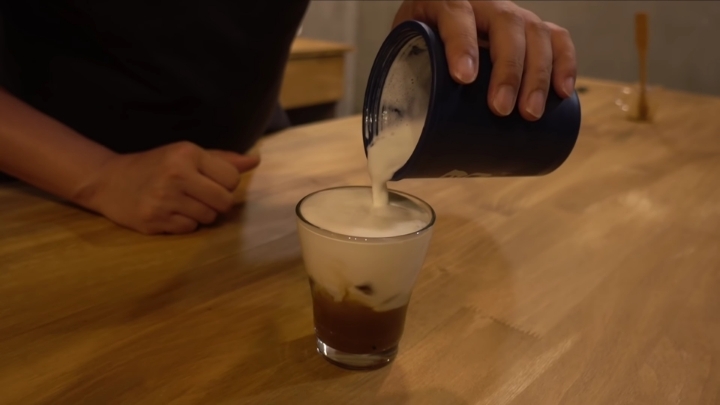 그 위에 (텀블러로 쉐킷쉐킷한) 우유 부으면 완성!