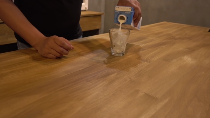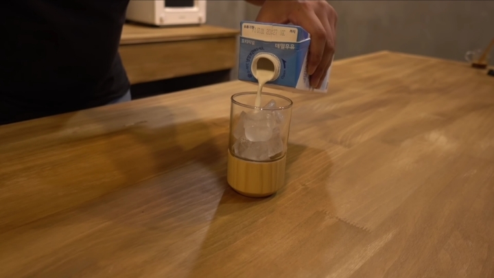 얼음 1~2개, 적당량의 우유를 넣고 텀블러 쉐킷쉐킷
