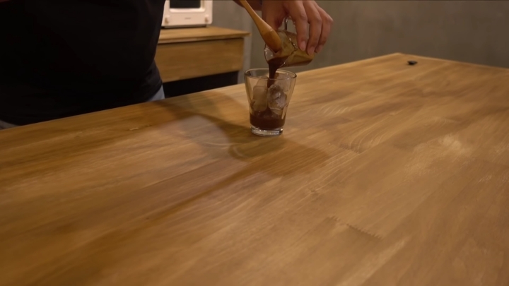 얼음잔에 아까 녹인 커피 믹스 원액 붓고