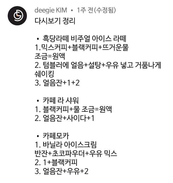 (단맛 있는 콜드 브루는 안됨! 스위트 콜드 브루 이런거는 노노)
