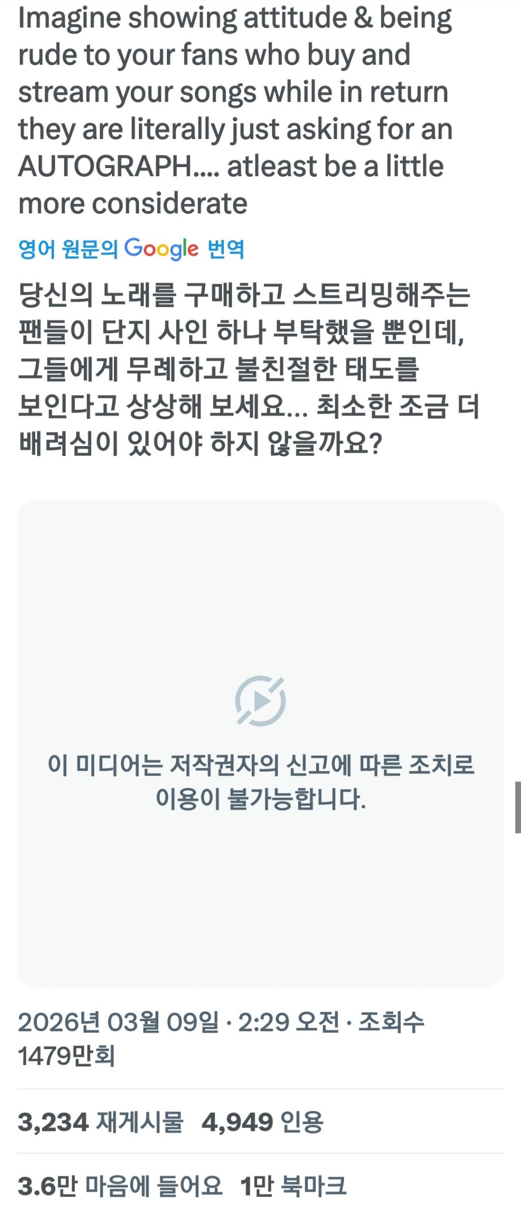 근데 또 그걸로 어떻게 저렇게 팬한테ㅋㅋ무례하냐고 존나 까임...