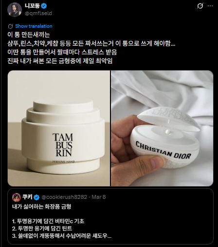 작성시간 26.03.10 ㅋㅋㅋ탬버린즈... 그냥 저 브랜드 스타일 같더라 실용성없고 그 가격대 어디 선물하기 괜찮은 포지션을 노린거 같았음