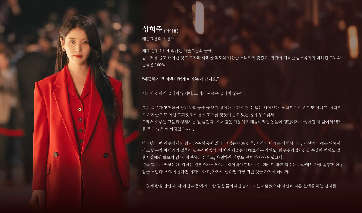 그런 희주가 기어코 신분상승을 하겠다 했을 땐 농담인 줄 알았다. 하지만 희주의 왕실 입성이 점점 현실화 되자 혜정은 입궁을 결심한다. 희주에게 결혼이 사업이라면 파트너인 자신은 당연히 함께여야 하니까.