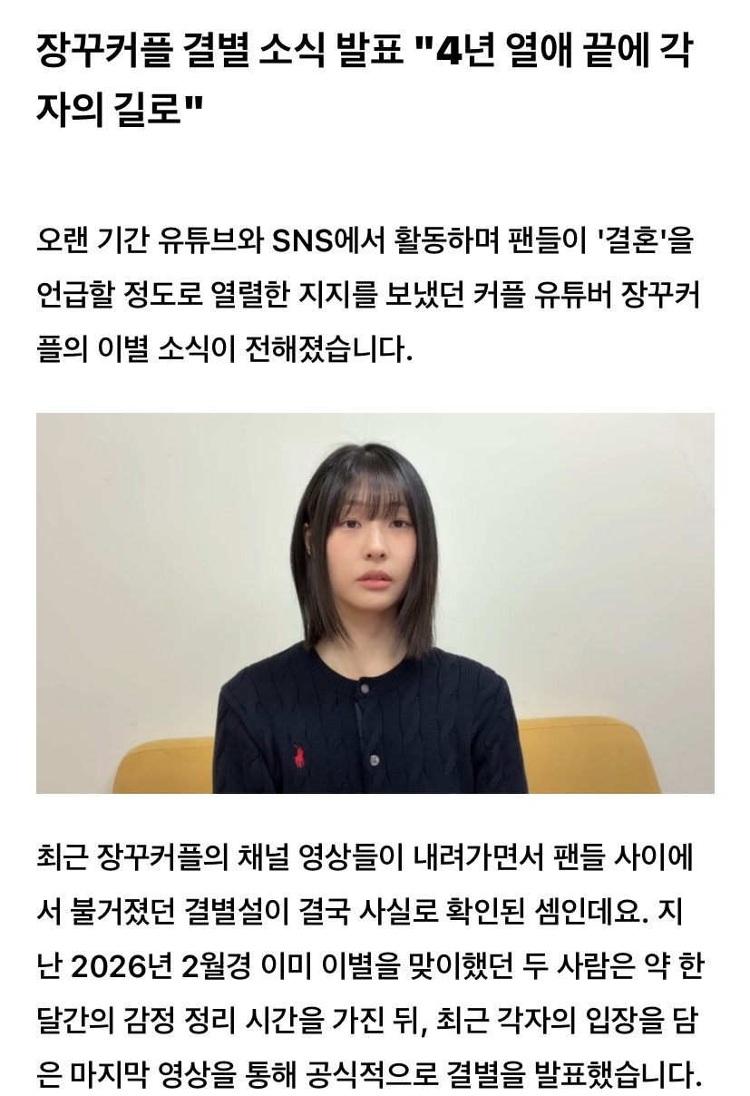 작성자느ㅣ개비최종학력리박스쿨 작성시간 26.03.11 연애를 너무 온세상이 다알게 했네...... 헤어지면 좀 곤란하겠다..... 구독자도 아깝고