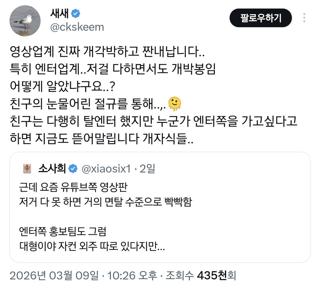 작성자1771711 작성시간 26.03.12 저거 다할줄알면 본인이 1인미디어하지;