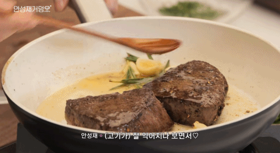 버터포밍 되면 마늘 로즈마리 향 입은 기름 존나 끼얹어