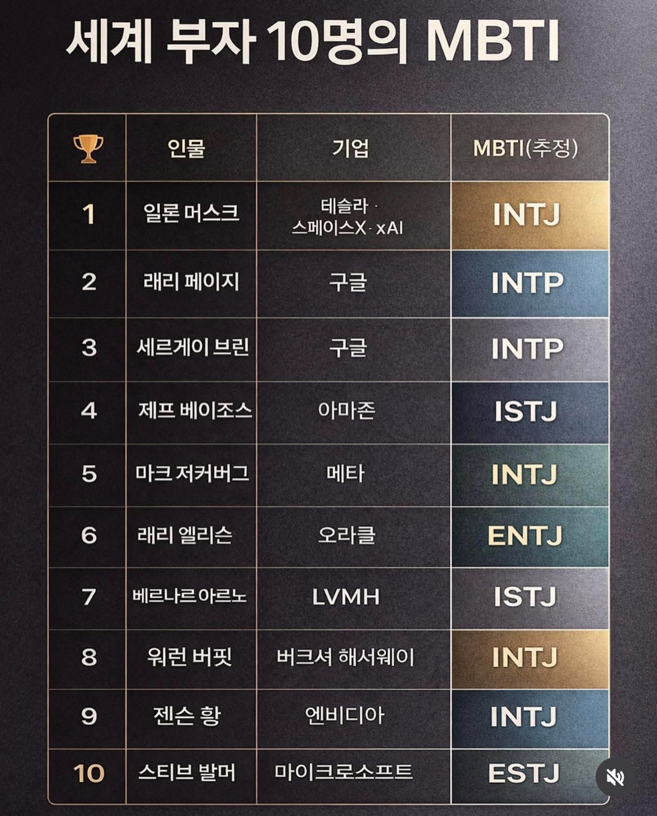[흥미돋]세계 부자 10명의 MBTI 작성자루카걸어다니노|작성시간26.03.12|조회수15,246 목록 댓글 31 글자크기 작게가 글자크기 크게가 출처: 여성시대 루카걸어다니노F는 없다 다음검색 현재 게시글 추가 기능 열기 북마크 공유하기 신고 센터로 신고 댓글 댓글 31 댓글쓰기 답글쓰기 댓글 리스트 작성자로또일등제발쪼옴 | 작성시간 26.03.12 tj 많네 작성자뿡스바리 | 작성시간 26.03.12 Isfp 누워잇나 (나 작성자코화썽 | 작성시간 26.03.12 인티제가 십새기 라는건가요? 작성자룩백2 | 작성시간 26.03.12 ㅅㅂ... 에프야 힘내 작성자잣망루피 | 작성시간 26.03.12 무직백수 isfp 댓글 전체보기